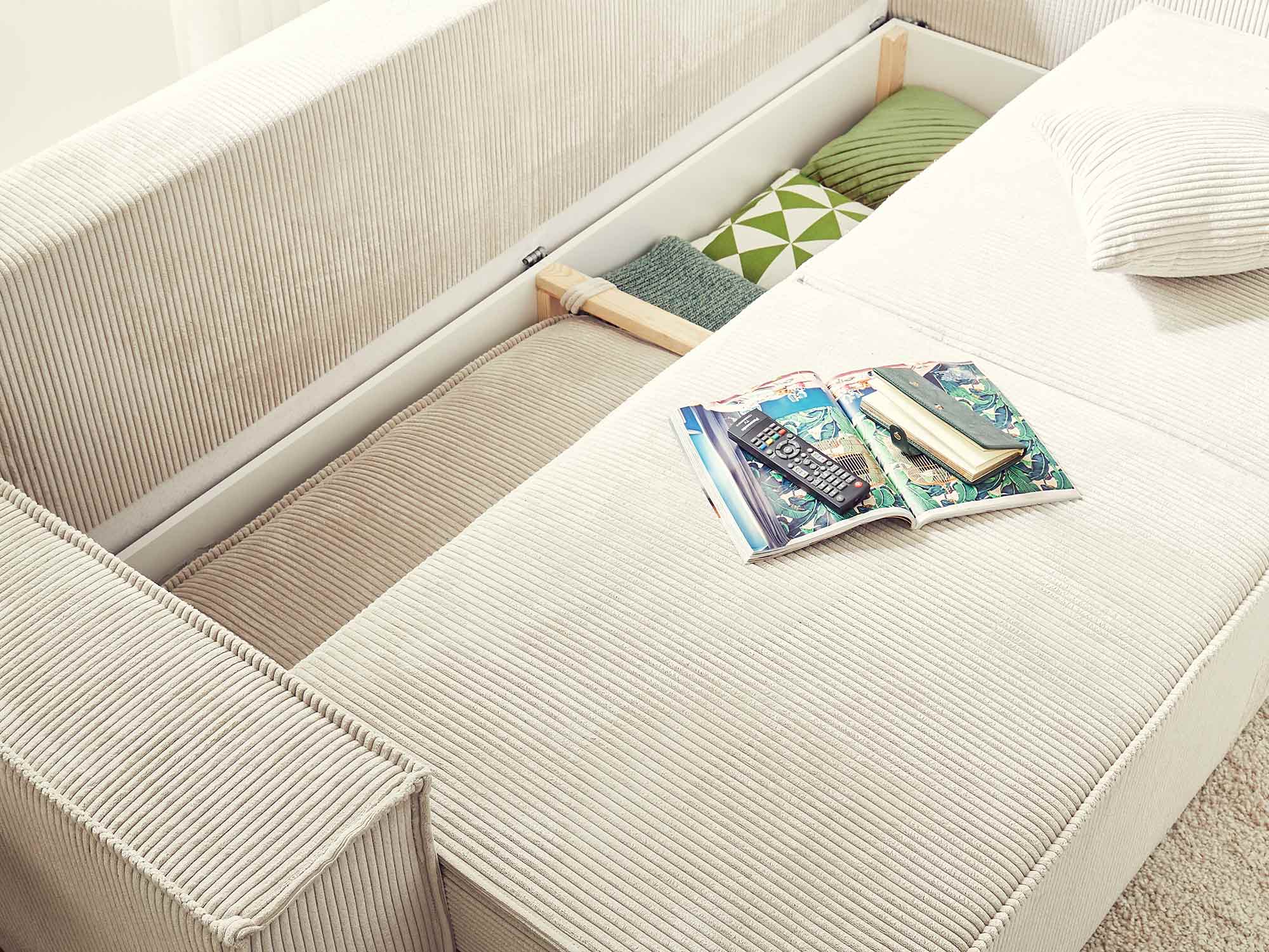 Dellia - canapé 3 places convertible - avec coffre - en velours côtelé - style contemporain