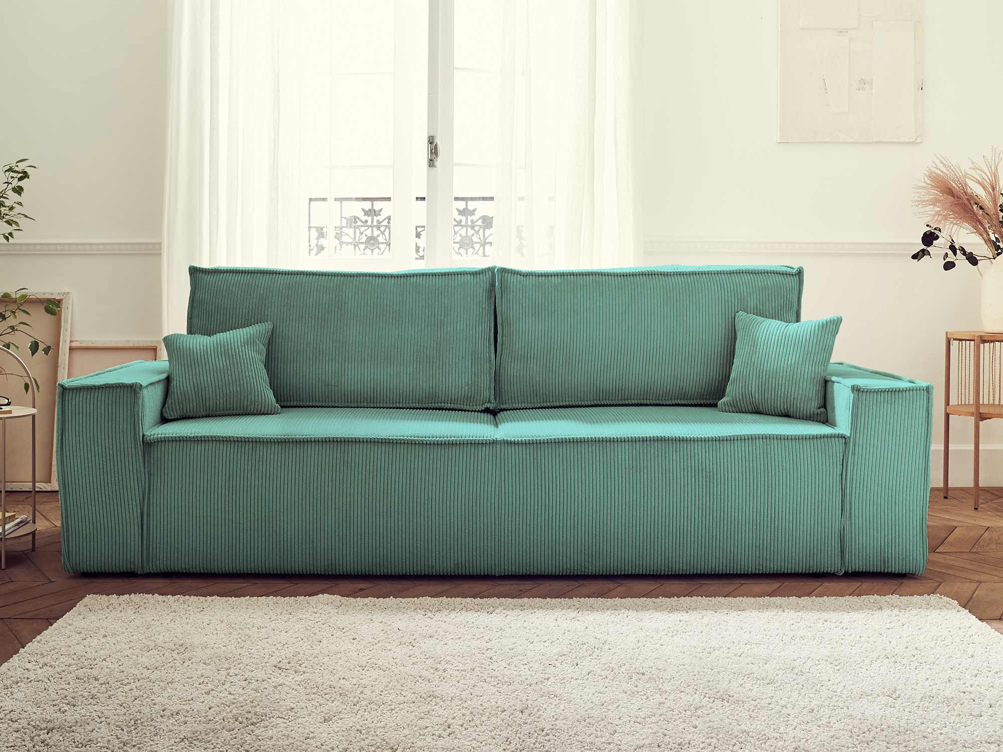 | Libellé | Dellia - canapé 3 places convertible - avec coffre - en velours côtelé - style contemporain |