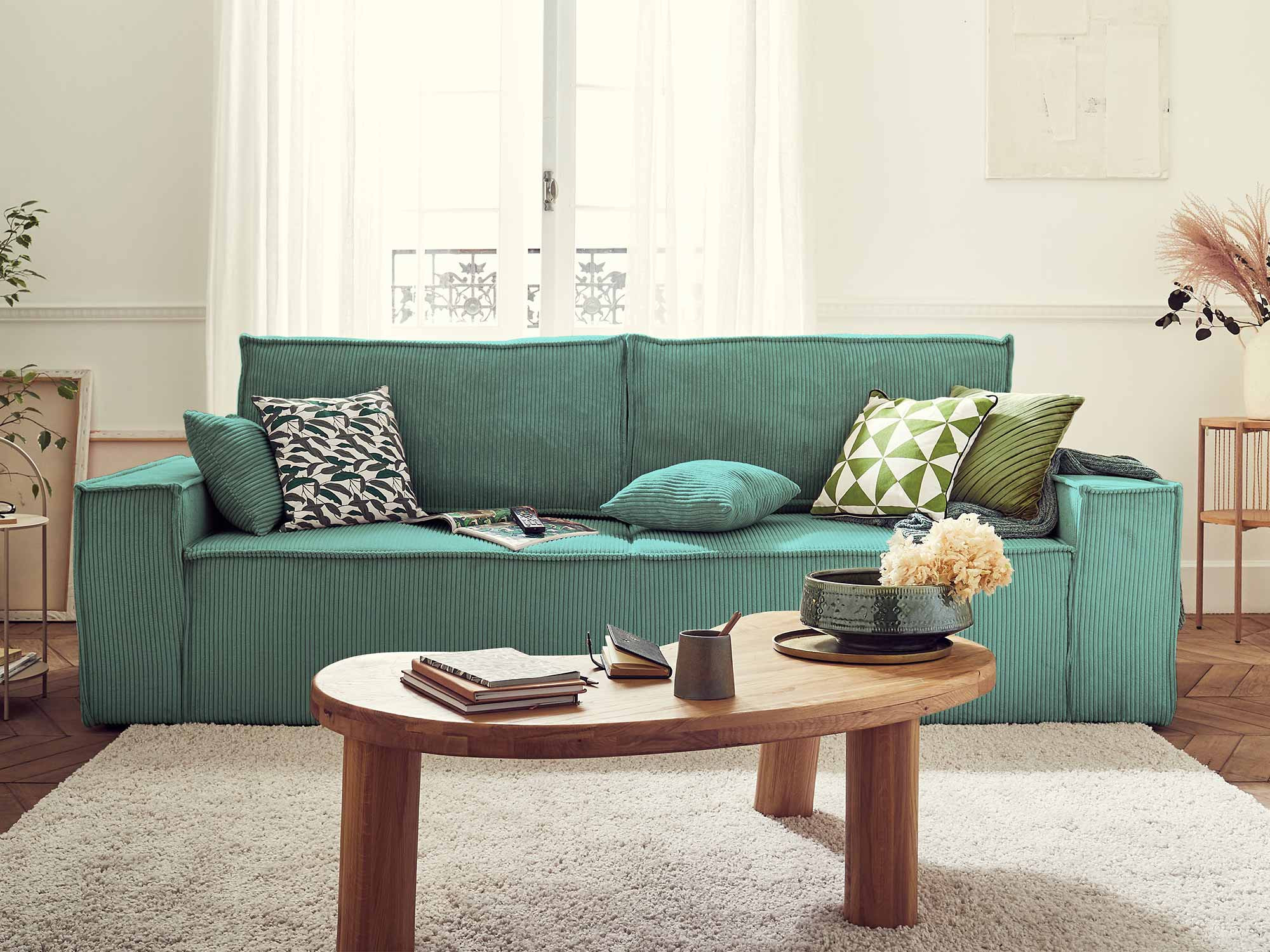 Comme tous les canapés en velours côtelé, Dellia n'aime pas l'eau. Il est donc recommandé de le nettoyer à l'aspirateur avec un embout adapté. Nettoyer les salissures légères avec un chiffon humide.