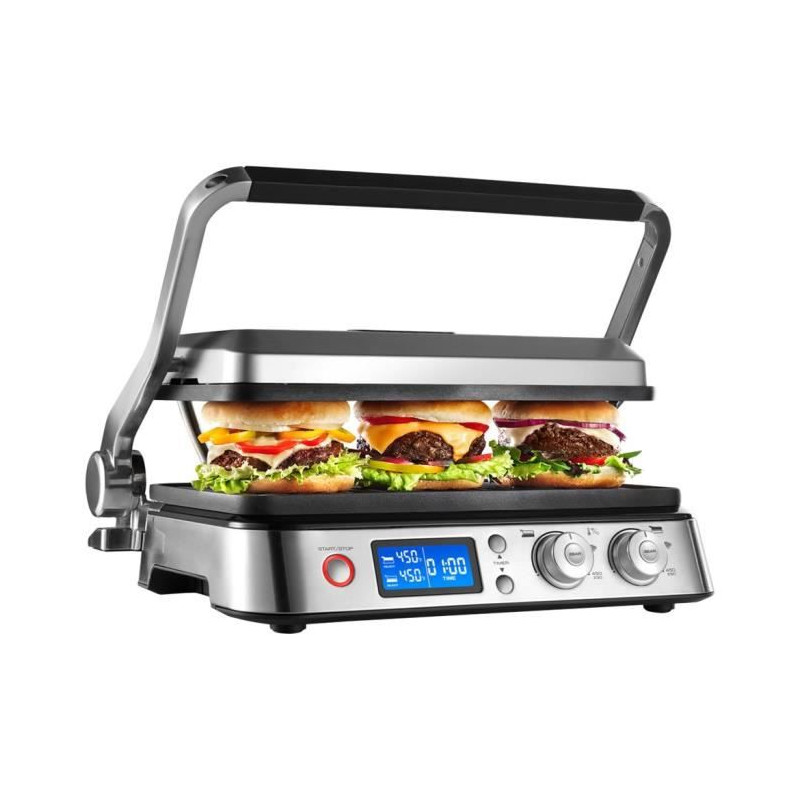 2000W - panneau de contrôle digital - contrôle electronique de la T° via app - contrôle des éléments de chauffe haut et bas indépendants surface plaques 37x23 - écran LCD - 2 sets de plaques interchangeables (plancha-grill) - systeme de verrouillage