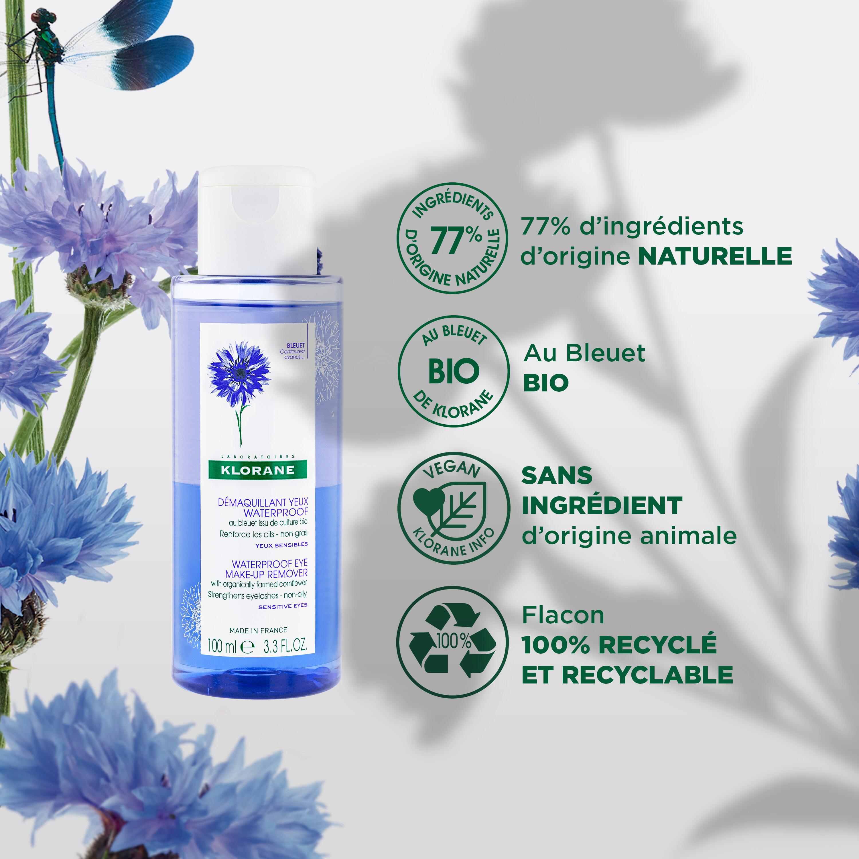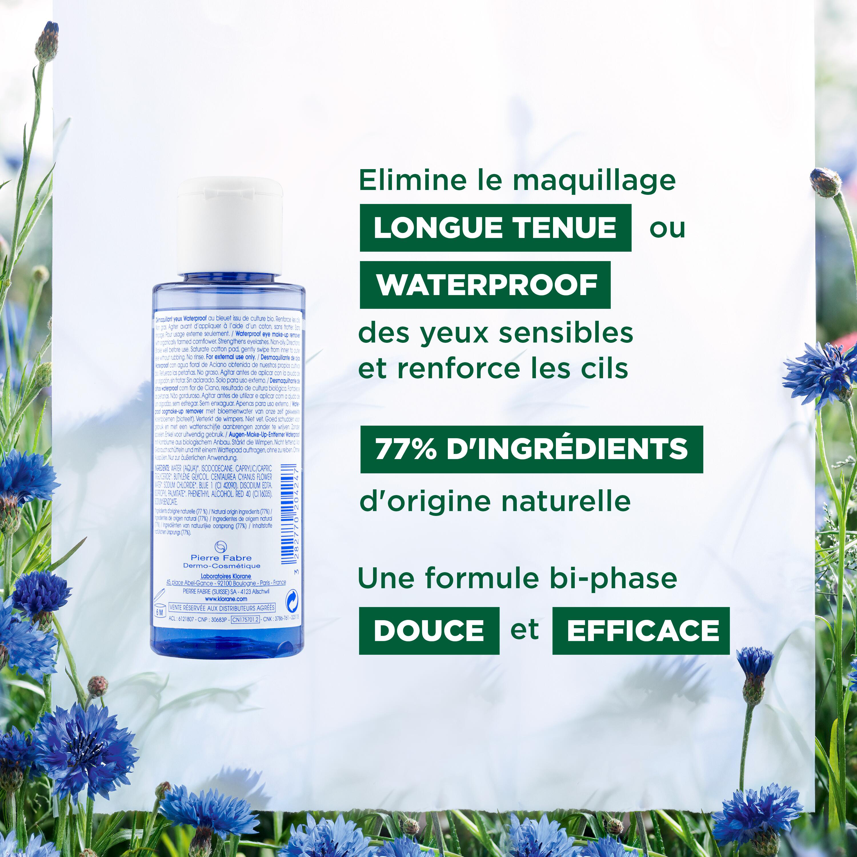 [Cet avis a été recueilli en réponse à une offre.] Avec son doux parfum de bleuet apaisant , ce démaquillant yeux waterproof est très agréable à utiliser . Je l’applique sur mon coton démaquillant réutilisable puis je le passe sur mes yeux en effectuant des petits cercles . Résultats : mon mascara a complètement disparu ainsi que mon fard à paupière . Il n’assèche pas la peau et procure une sensation de bien être pendant & après l’application. J’aime aussi l’avoir en petit format flacon pour pouvoir l’emmener avec moi le week end . Merci Klorane de prendre soin de nous !