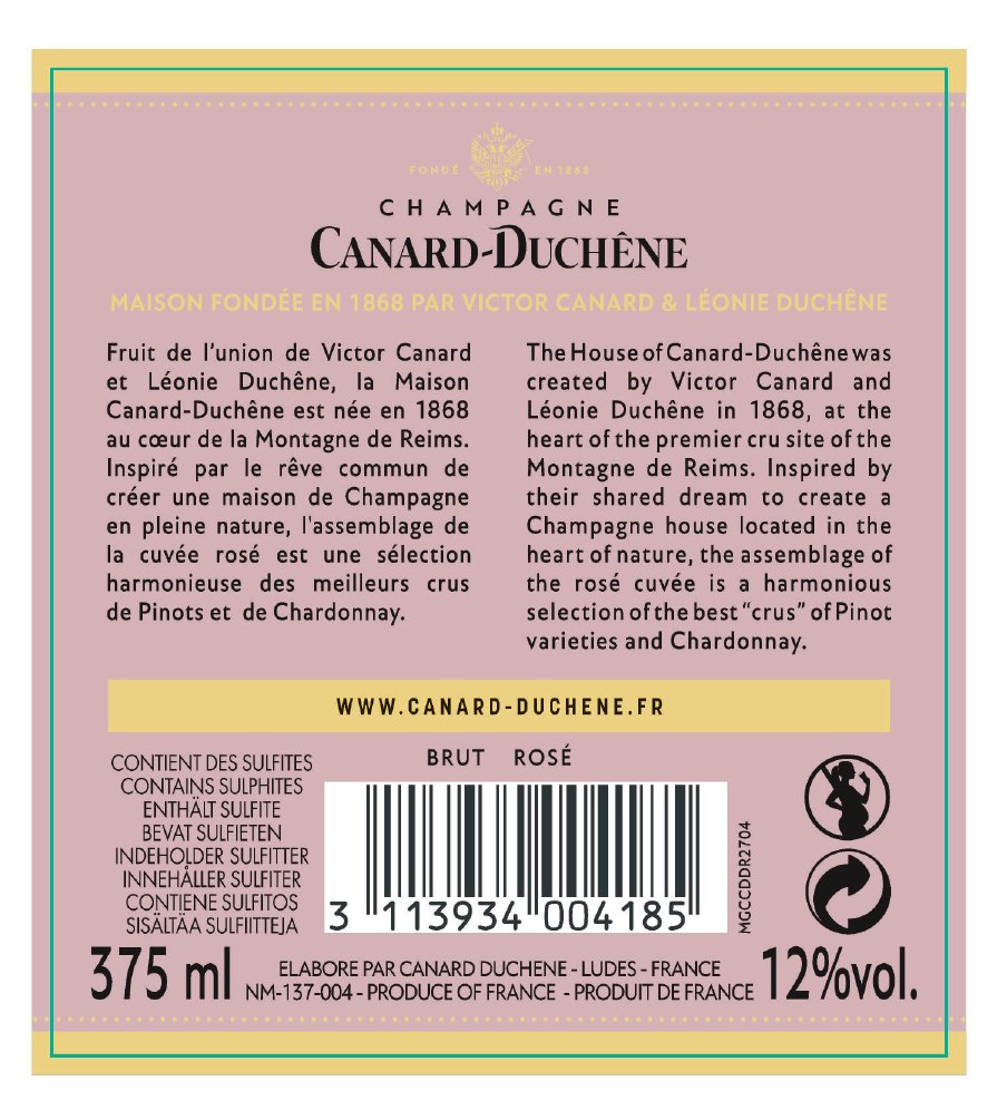 | Libellé | Demi-bouteille Champagne Canard-Duchêne - Brut Rosé - 37.5 cl |
