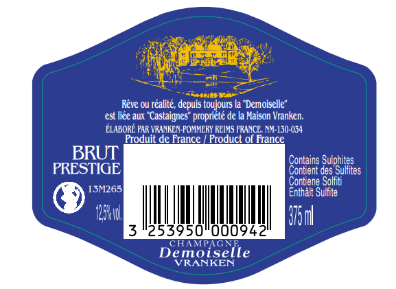 | Libellé | Demi-bouteille - Champagne Demoiselle - Brut - 37.5 cl |