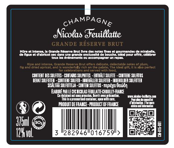 | Libellé | Demi-bouteille Champagne Nicolas Feuillatte Grande Réserve - Brut - 37.5 cl |