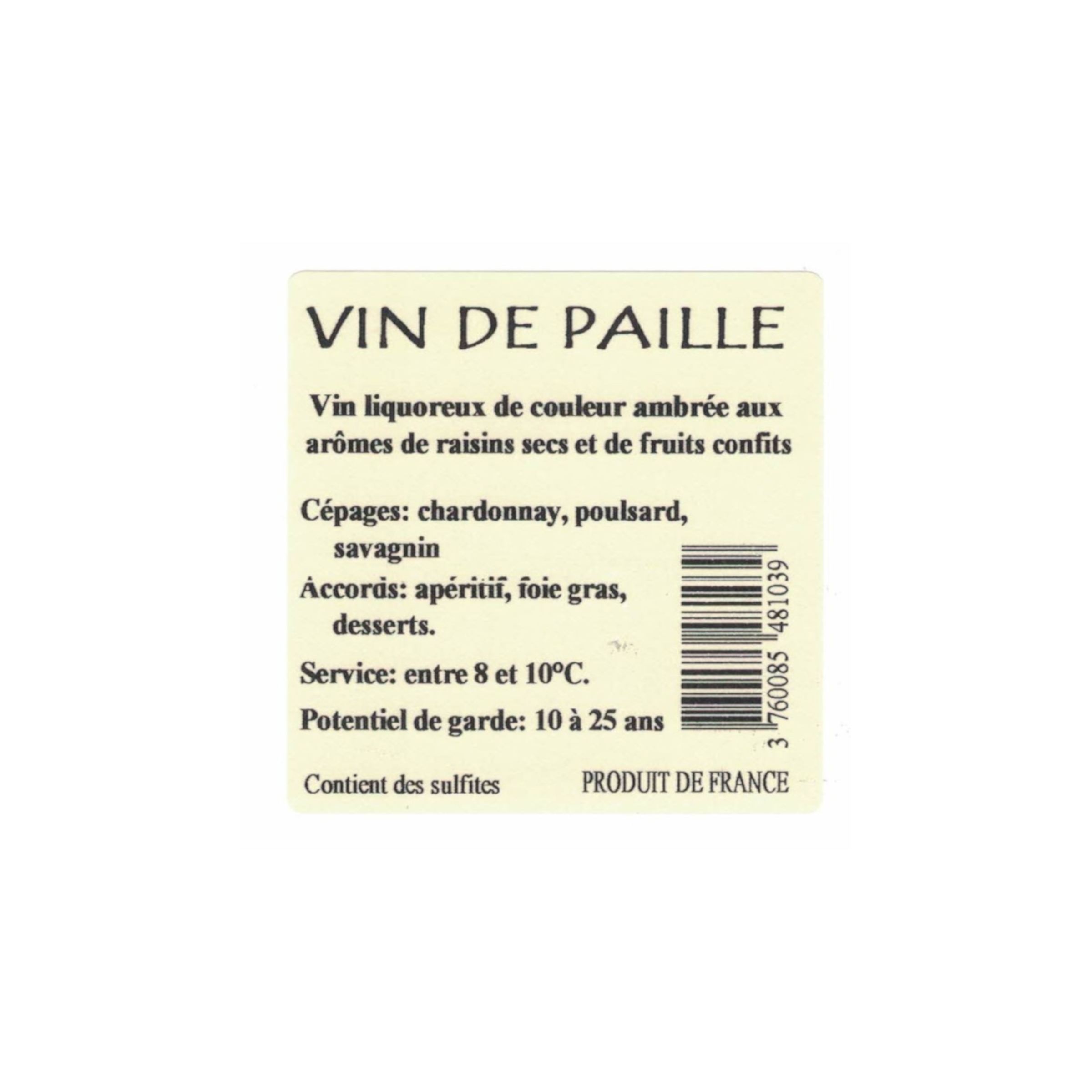 Libellé Demi-bouteille -Vin de Paille, 2016 - Côtes du Jura AOC - Blanc Moelleux - 37.5 cl
