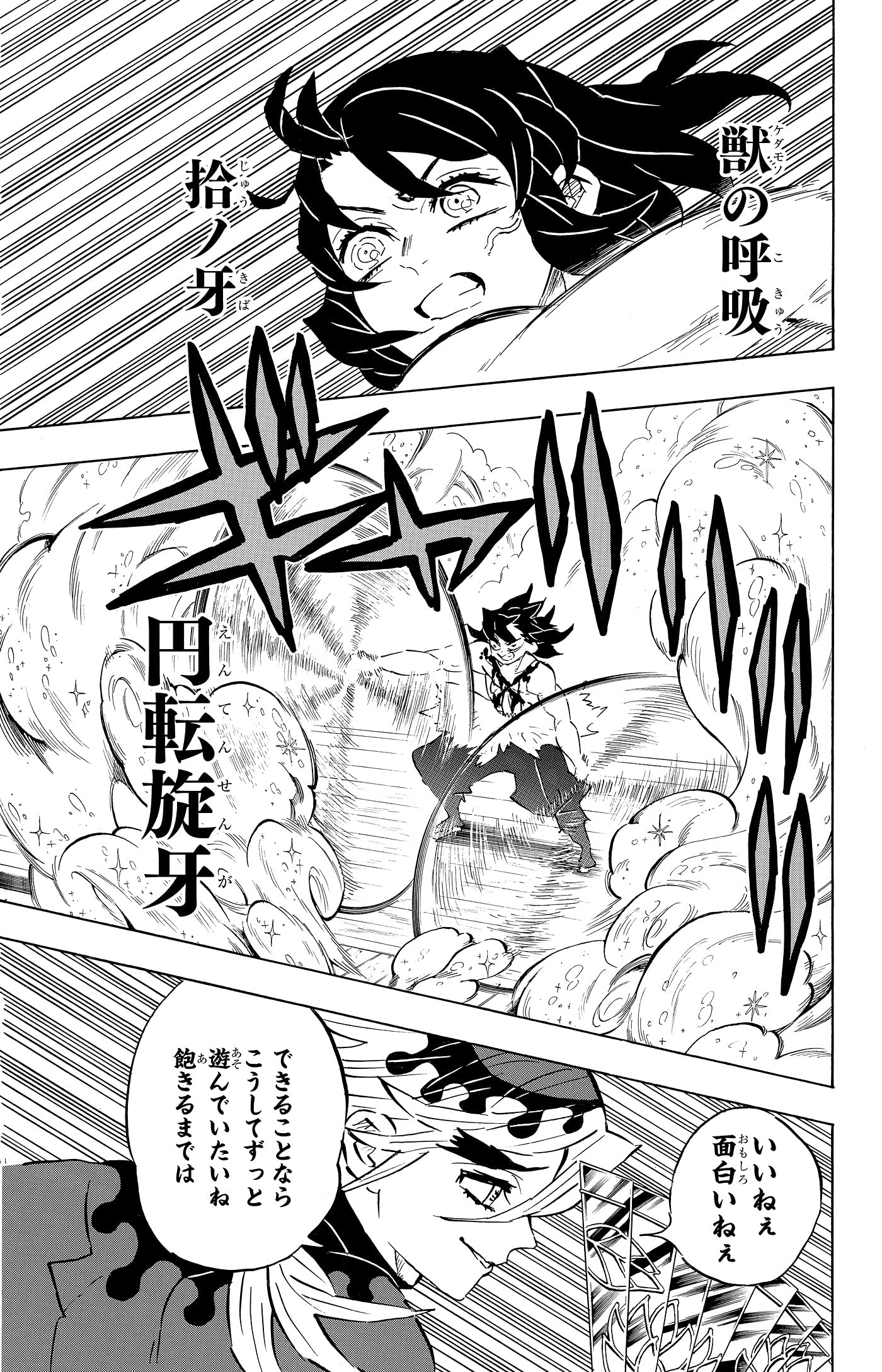 Le combat fait rage entre Doma, la 2e lune supérieure et les pourfendeurs Kanao et Inosuke. Les deux jeunes guerriers, tremblant de colère, parviendront-ils à venger tous ceux que Doma a dévorés ? Non loin de là dans la Forteresse Infinie, Mitsuri Kanroji, le pilier de l'Amour, et Obanai Iguro, le pilier du Serpent, font face à la nouvelle 4ème lune supérieure, tandis que Muichiro Tokito, le pilier de la brume, se retrouve face à la 1ère lune supérieure, qui lui fait une étrange révélation sur sa famille…