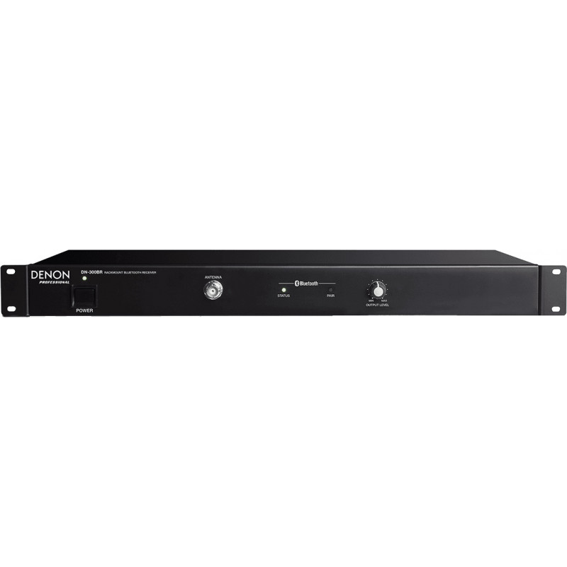 Denon Pro DN300BR - Récepteur audio bluetooth rackable Le DN-300BR est un récepteur audio Bluetooth® 4.0 rackable au format 1U avec sorties audio de qualité professionnelle permettant à l'utilisateur d'ajouter une connectivité audio Bluetooth® stéréo sans fil à tout système audio professionnel. Le DN-300BR peut mémoriser en interne jusqu'à 8 dispositifs Bluetooth® puis transmettre le signal audio vers un mixeur, des enceintes amplifiées… via des prises Xlr ou Rca. L'antenne Bluetooth® fournie peut être montée sur le panneau avant ou arrière pour plus de commodité. Elle offre une réception jusqu'à 30 m de portée. Le DN-300BR dispose d’un contrôle du niveau de sortie et de voyants d’état, sans oublier la connexion Euroblock à l'arrière de l'appareil pour déporter la fonction d’appairage à distance pratique lorsque le DN-300BR n'est pas facilement accessible aux utilisateurs. Caractéristiques: - Ajoutez une réception Bluetooth® 4.0 stéréo à n’importe quel système audio - Appairer jusqu’à 8 dispositifs externes - Sorties Xlr symétriques et Rca asymétriques - Euroblock pour déporter la fonction d’appairage à distance. - Entrées BNC (antenne incluse) - Portée d'environ 30 mètres - Réponse en fréquence : 20 Hz - 18 kHz (+1dB) - Rapport signal sur bruit : > 75 dB - Supporte les codecs SBC, MP3, AAC, aptX - Poids et dimensions : 3 kg, 434 x 271 x 44 MM