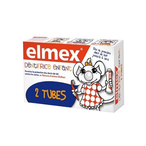 Elmex Dentifrice Enfant Lot de 2 x 50 ml est spécialement conçu pour préserver et protéger les dents de lait de votre enfant dès la 1ère dent de lait et jusqu'à l'âge de 6 ans. Le fluorure d'amines Olafluor se fixe rapidement sur l'émail pour former une couche protectrice, rend les dents plus résistantes aux pertes minérales liées aux caries, et stimule la reminéralisation de l'émail. Avec son dosage en fluor adapté aux besoins des dents de lait, Elmex Dentifrice Enfant est recommandé pour la plus grande protection et le plus grand soin des dents de lait.