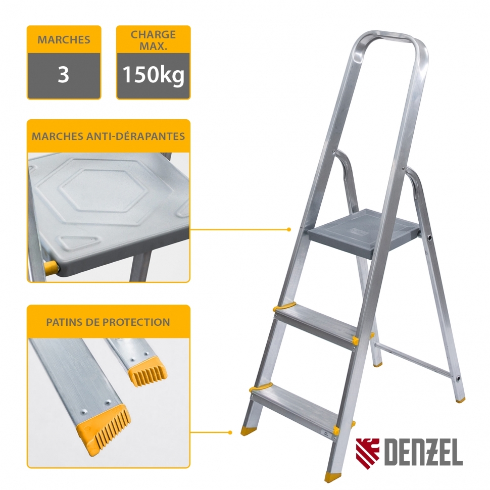 | Libellé | DENZEL - Escabeau 3 marches en aluminium - jusqu'à 150 kg |