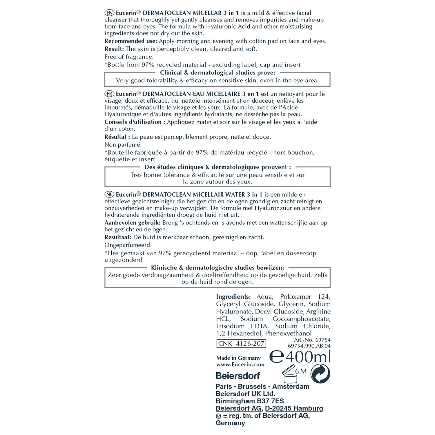 Libellé Dermatoclean Hyaluron Soin Eau Micellaire 3 En 1 400ml