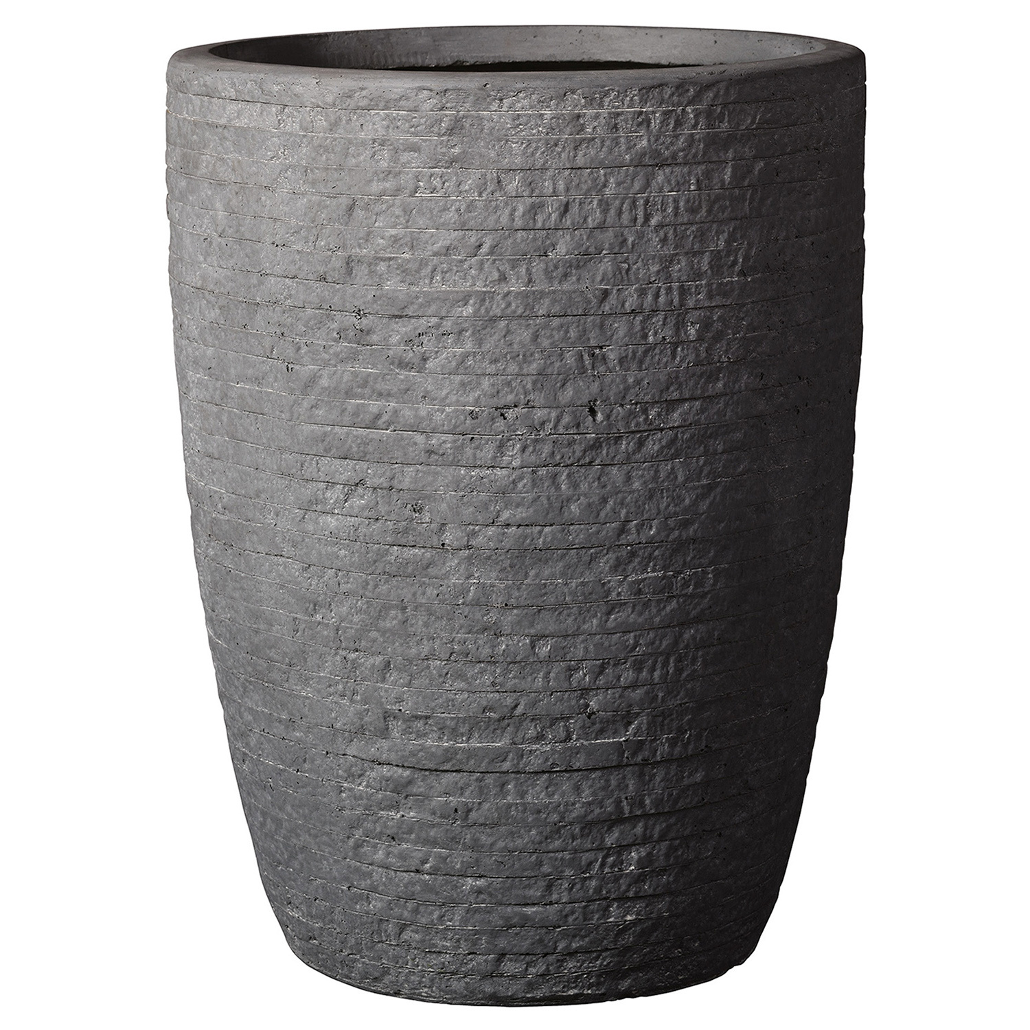 Cuvier Haut Minéral 42 x h52 cm en Matière Fibre, résistante au gel, résistante aux UV, pot fait main, percé. Volume 90 L. Coloris Gris.