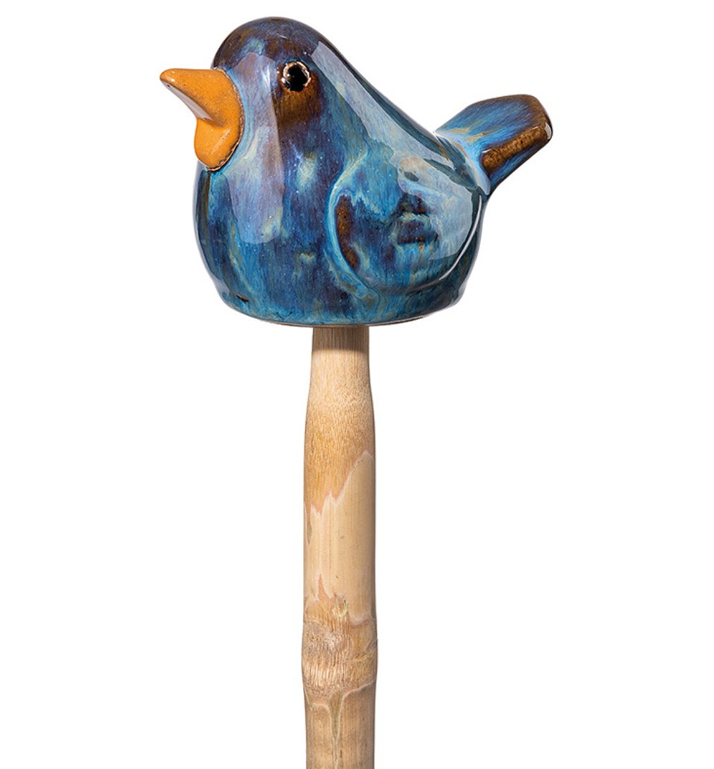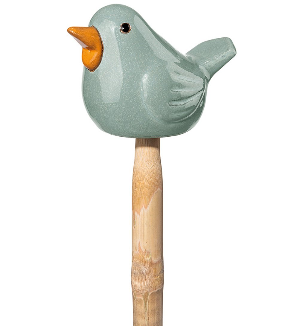 Stick Uccellino 11x7,5 x h7,5 (60) cm en Terre cuite émaillée artisanale, résistante au gel, résistante aux UV, objet fait main. Coloris Assortis.