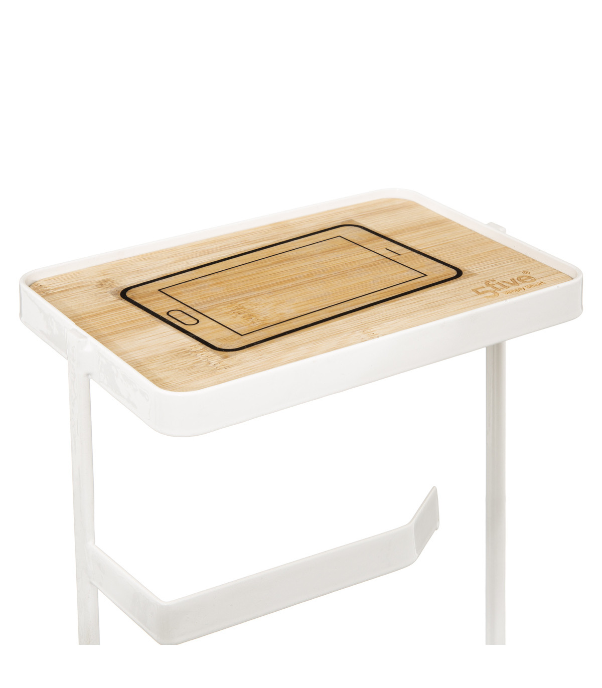 Dérouleur papier toilette WC avec réserve et support téléphone en métal Blanc --