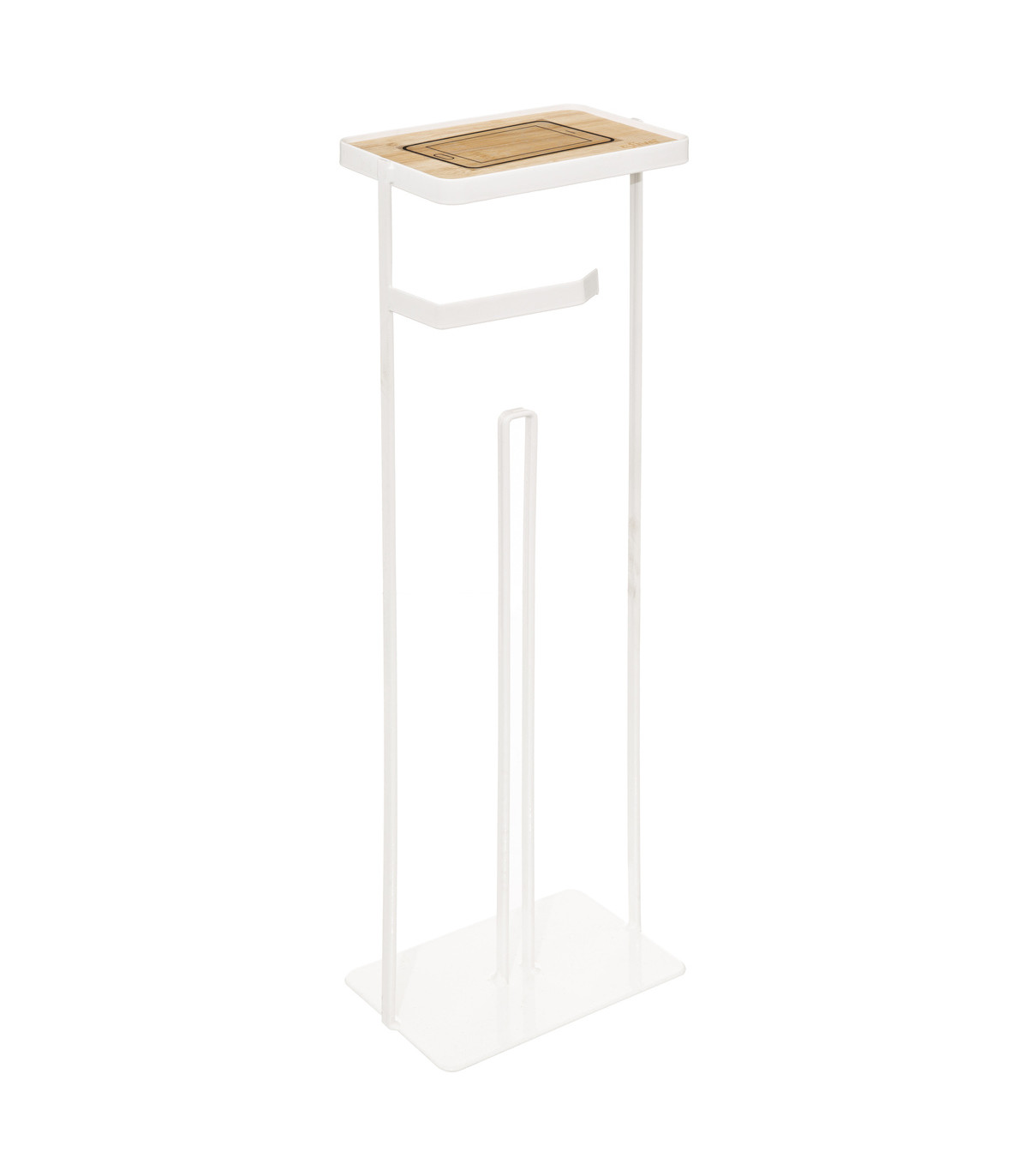 Dérouleur papier toilette WC avec réserve et support téléphone en métal Blanc --