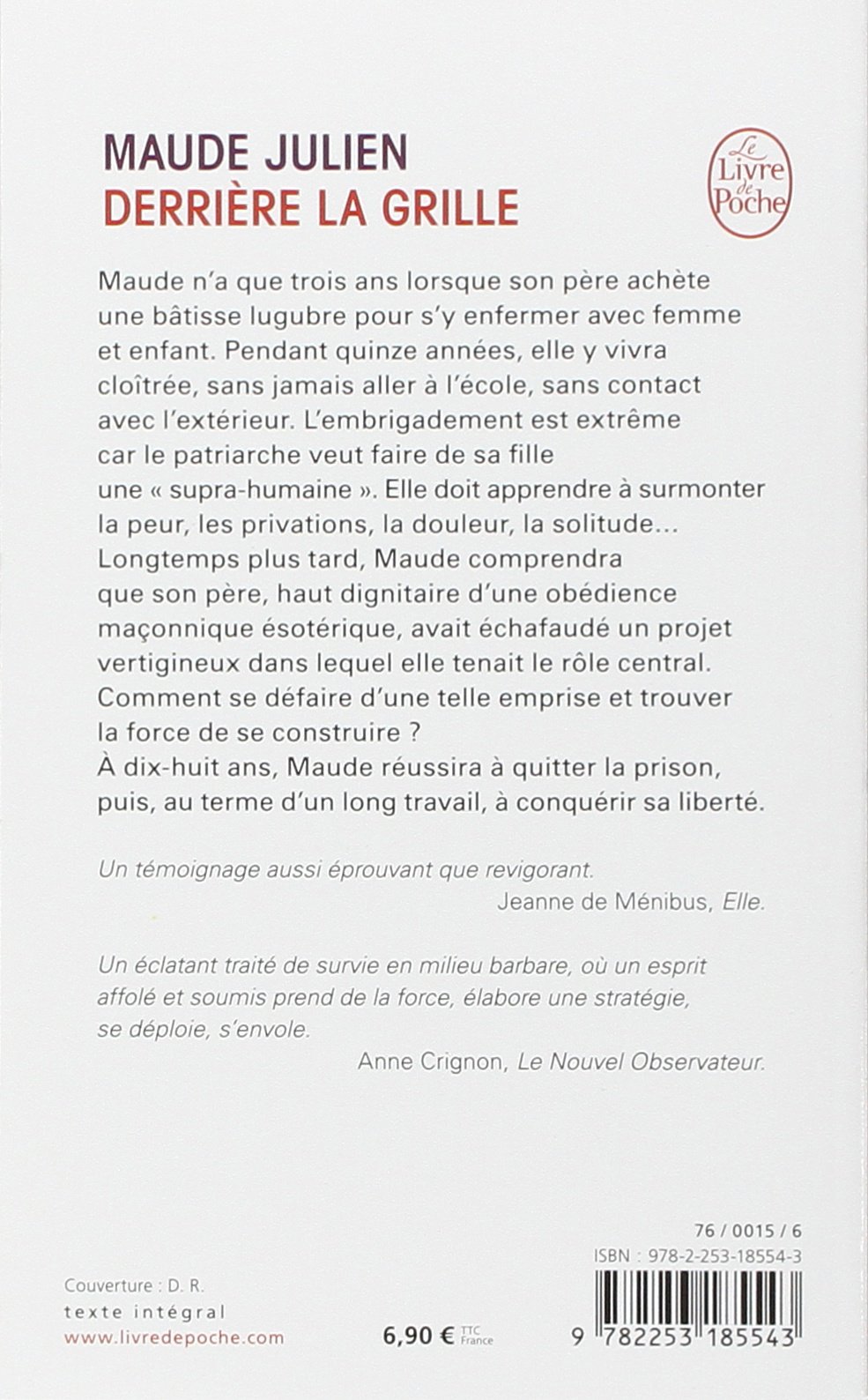 Maude n'a que trois ans lorsque son père achète une bâtisse lugubre pour s'y enfermer avec femme et enfant. Pendant quinze années, elle y vivra cloîtrée, sans jamais aller à l'école, sans contact avec l'extérieur. L'embrigadement est extrême car le patriarche veut faire de sa fille une «supra-humaine». Elle doit apprendre à surmonter la peur, les privations, la douleur, la solitude... Longtemps plus tard, Maude comprendra que son père, haut dignitaire d'une obédience maçonnique ésotérique, avait échafaudé un projet vertigineux dans lequel elle tenait le rôle central. Comment se défaire d'une telle emprise et trouver la force de se construire ?