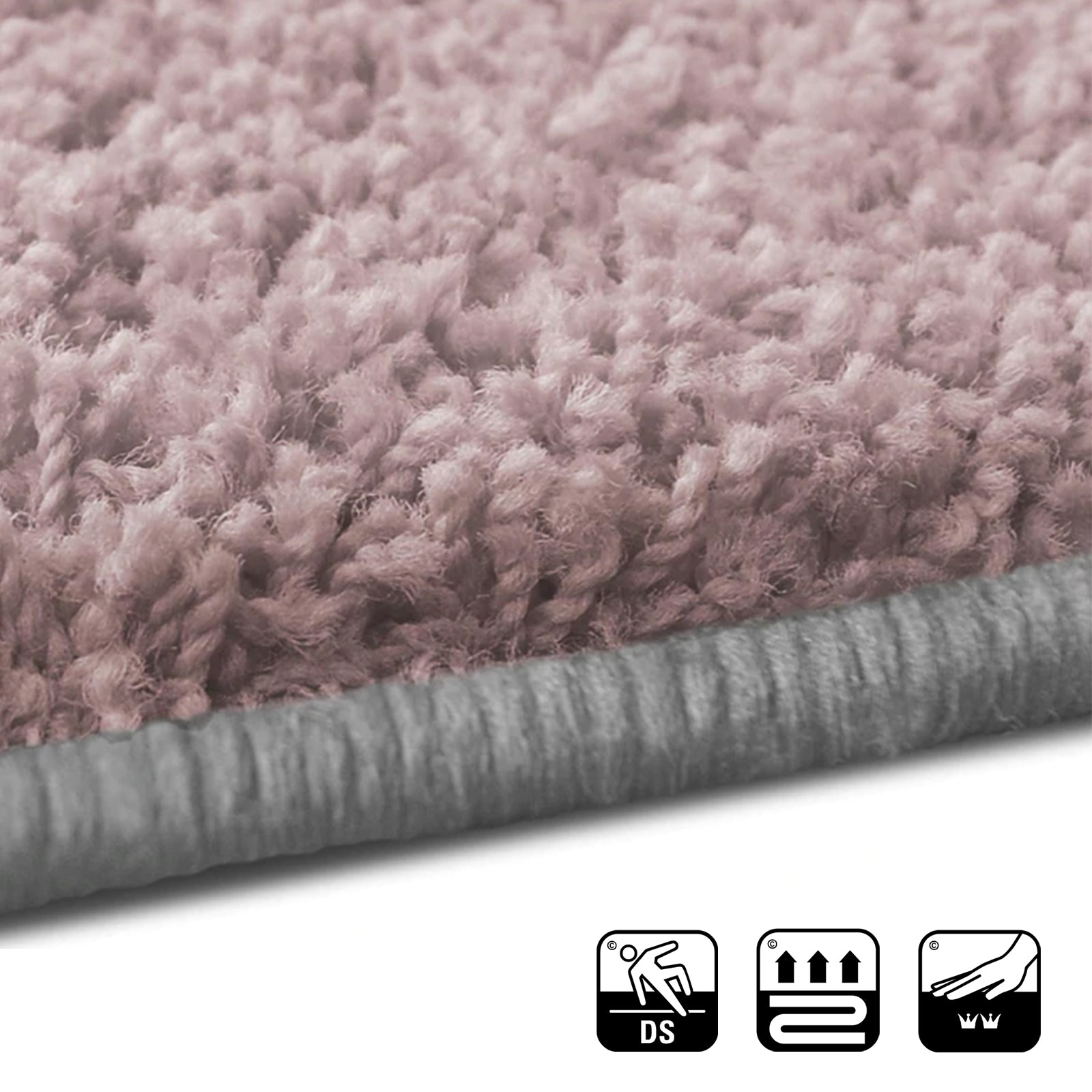 Le dos à action antidérapante fixe le tour de lit à poils longs en place et empêche les patins individuels de glisser. Les poils élevés duveteux et froissés en fibres de polypropylène robustes et faciles à entretenir assurent le confort et une ambiance fraîche dans la chambre à coucher. Les bords sont chacun pourvus d'une bordure de haute qualité et empêchent le contour du lit de s'effilocher.