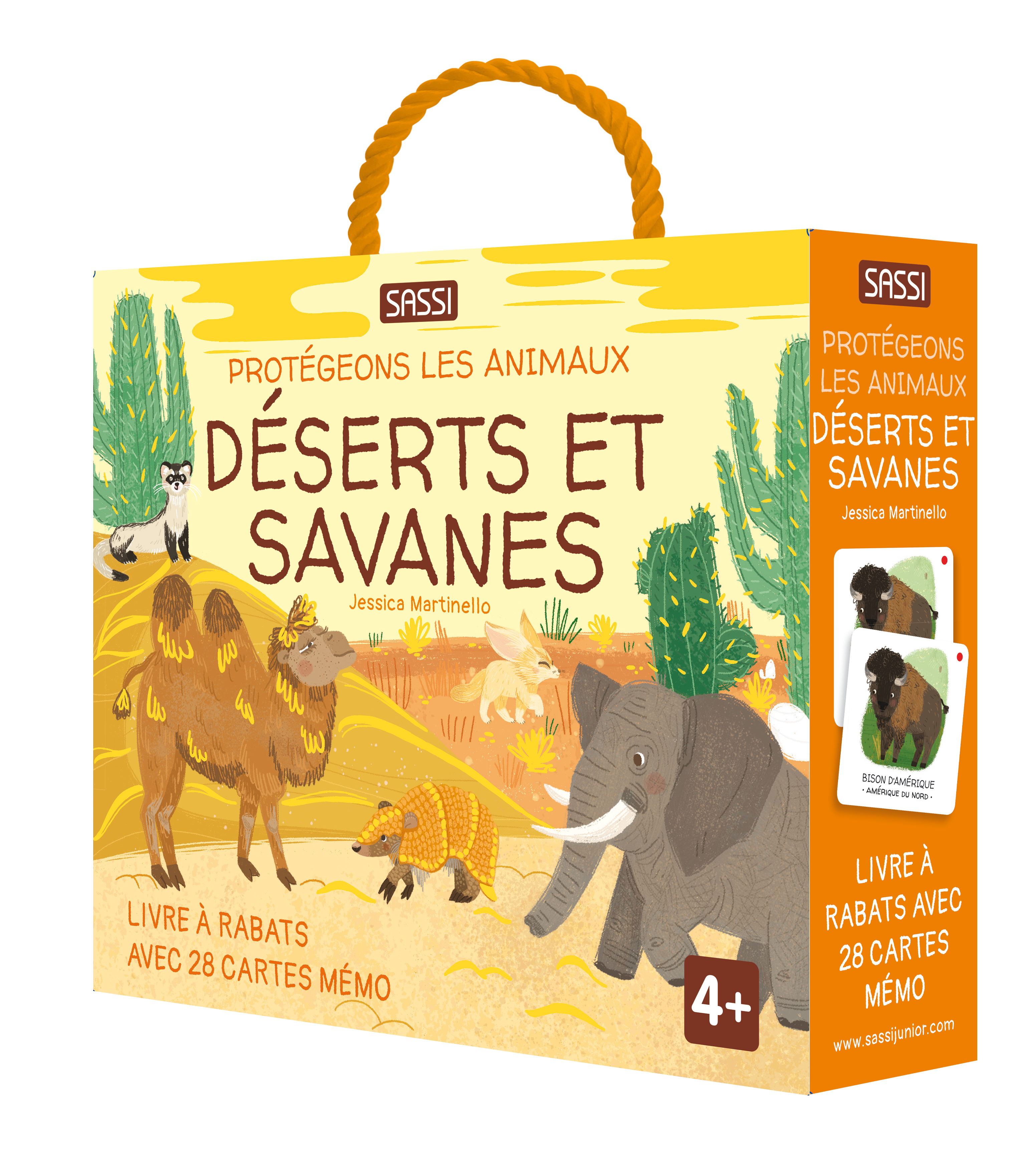Soulevez les petites fenêtres à l'intérieur du livre et découvrez de nombreux faits intéressants sur les animaux des deserts et savanes, l'environnement dans lequel ils vivent et pourquoi ils sont en danger. Jouez ensuite avec les cartes mémo et entraînez votre mémoire ! Un livre-jeu éducatif consacré aux espèces menacées de la planète qui stimule la curiosité et l'apprentissage.