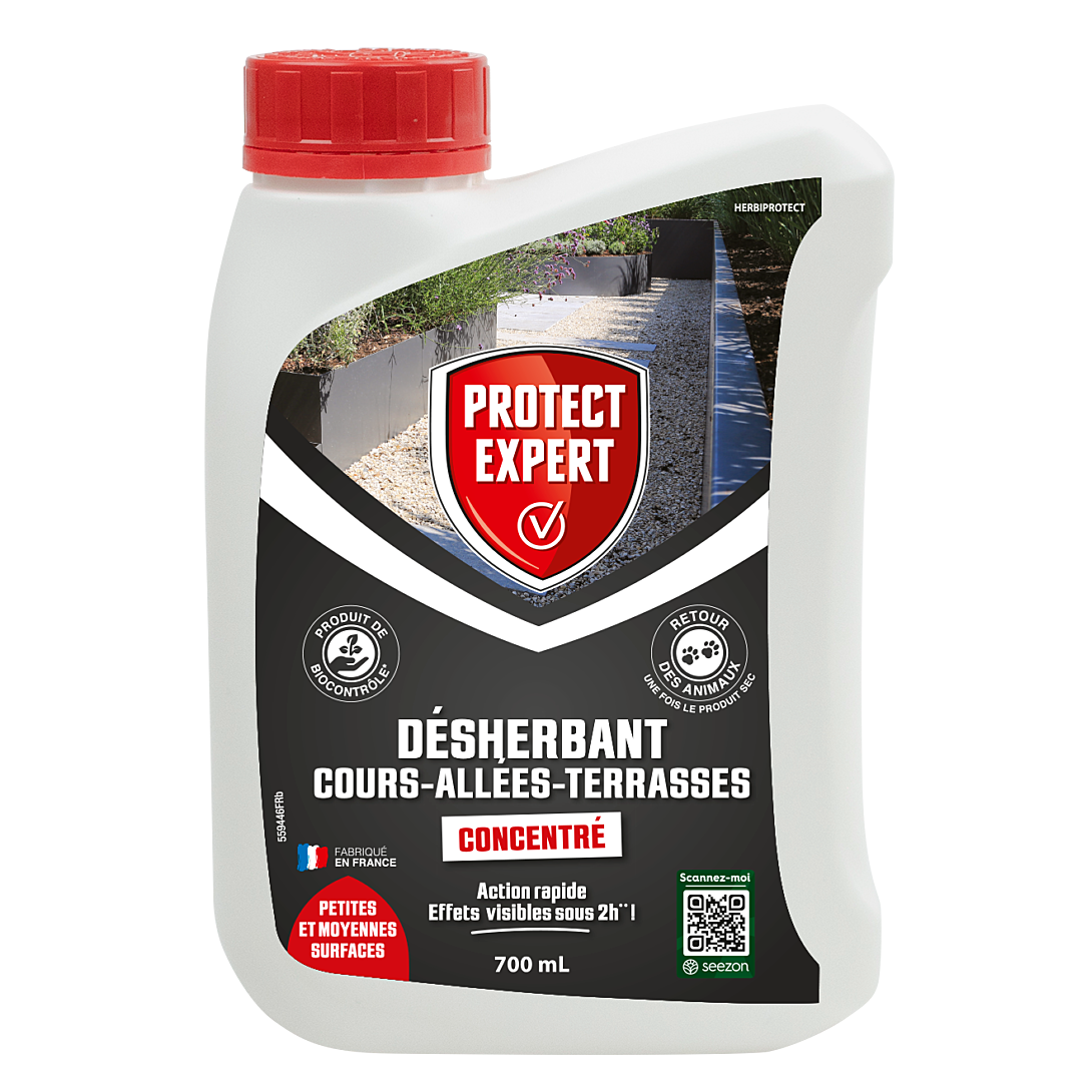 Le désherbant Cours-Allées-Terrasses PROTECT EXPERT agit par contact sur les parties aériennes des plantes ciblées et permet d’éliminer les principales mauvaises herbes et mousses. Composé d’un principe actif présent dans la nature, ce désherbant permet un retour rapide des animaux sur les surfaces traitées, dès que le produit a séché.