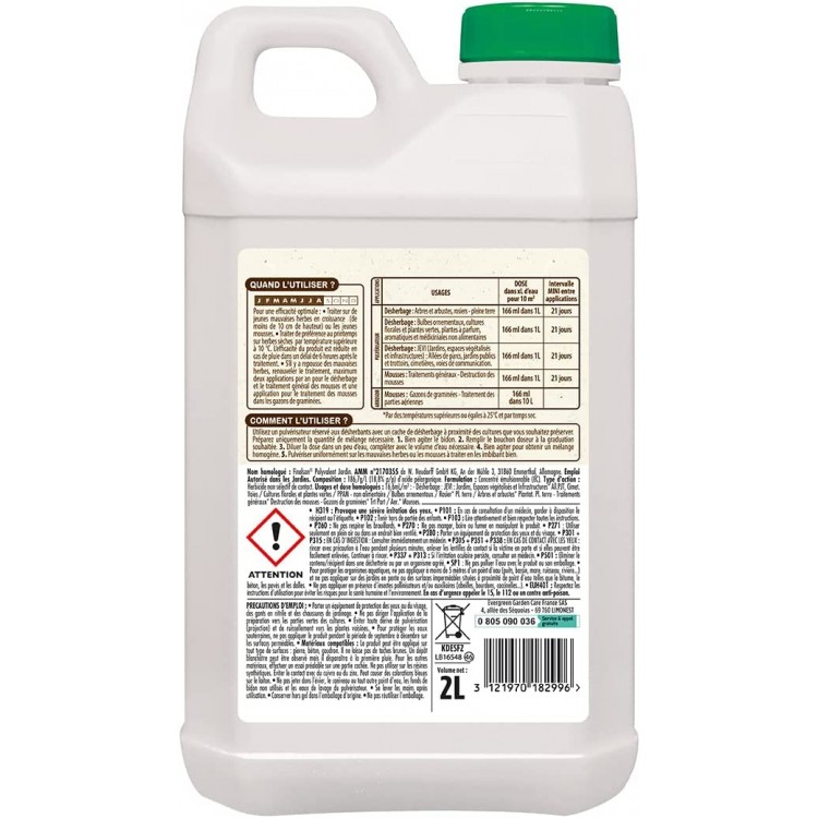Le désherbant polyvalent KB s’utilise aussi bien dans le jardin que sur les cours, allées, chemins et terrasses. A base d’acide pélargonique, une matière active présente dans la nature, il détruit rapidement les mauvaises herbes par simple contact. Les premiers effets sont visibles en 1 h. En bouteille avec bouchon doseur intégré, il permet de limiter le contact avec le produit. KB désherbant Finalsan Polyvalent Jardin, c'est la marque référente du désherbage à petit prix ! Format économique idéal jusqu'à 120m².