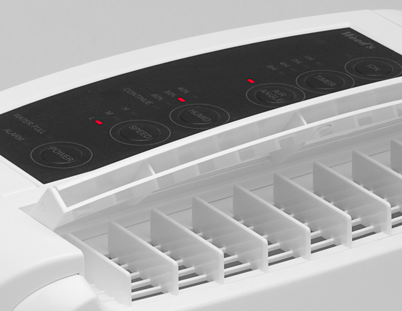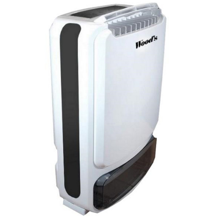 wdd80 - déshumidificateur 8l/j 40m² - Ce déshumidificateur Wood's WDD80 au silicagel fonctionne parfaitement à basse température dans les locaux non chauffés. Le silicagel est une matière qui capte l'eau et se régénère à l'air (durée de vie de 54000 H environ). Cet appareil est équipé de la fonction ion, d?un témoin automatique du taux d'hygrométrie, d?un témoin lumineux de bac plein et d?un hygrostat électronique qui est conçu pour un traitement anti-humidité efficace. Disposant de 3 vitesses d'utilisation, le WDD80 par Woods bénéficie d'une capacité d'extraction d'environ 8 L par jour pour une surface d'environ 40m². Le déshumidificateur WDD80 possède un filtre à air lavable pour retenir les impuretés de l?air. Le WDD80 va ventiler pendant quelques minutes après un arrêt manuel afin de refroidir la résistance et ensuite il se coupera complètement. - Type de produit : Déshumidificateur.