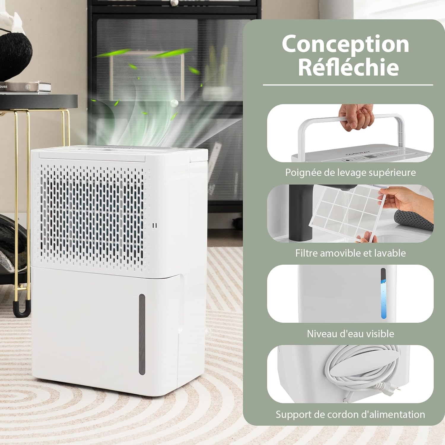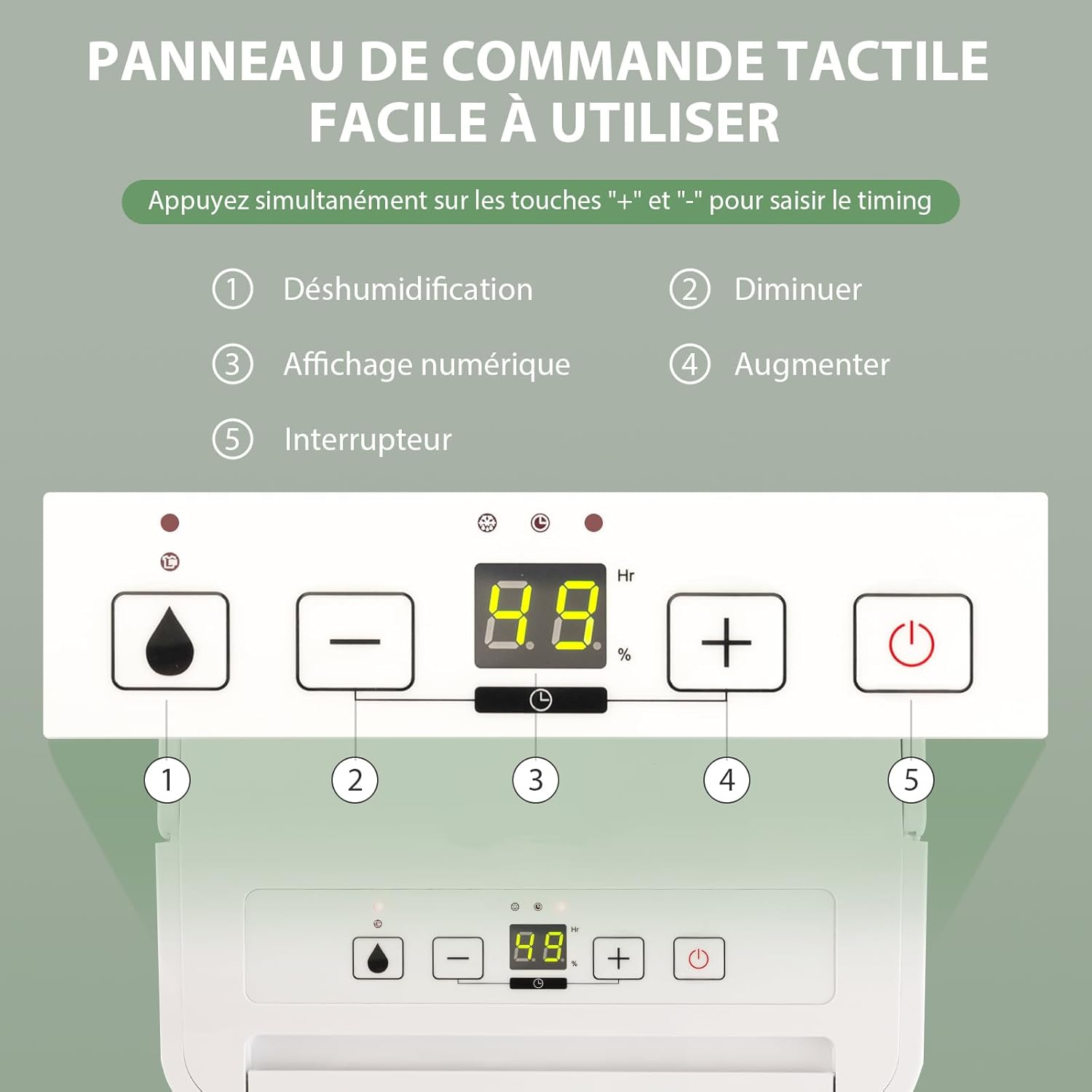 Déshumidification efficace avec plage d'humidité réglable de 30 % à 80 %