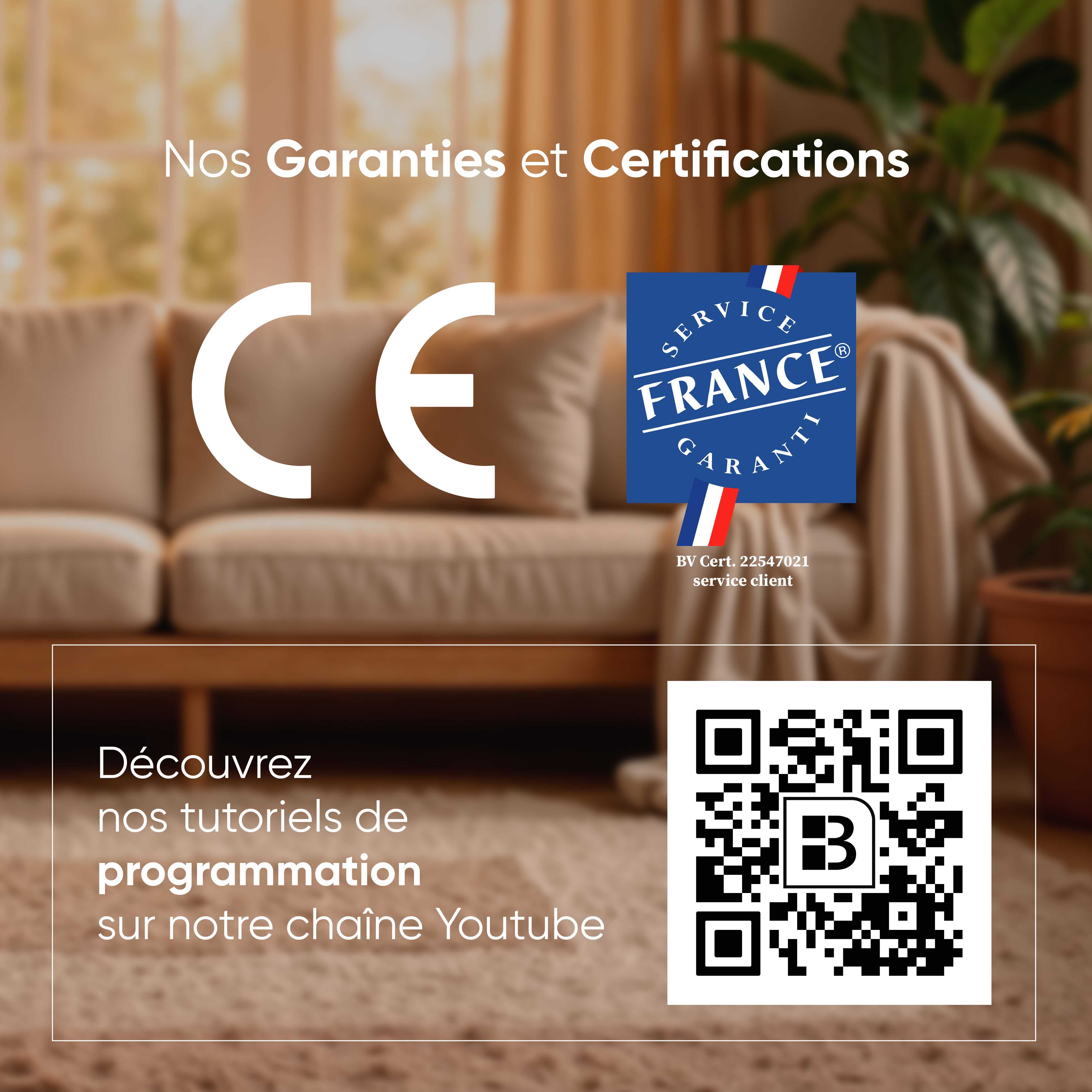 Avec un fonctionnement à seulement 39 dB, le Nova est discret et parfaitement adapté aux espaces de vie, y compris les chambres et bureaux. Son mode intelligent optimise sa consommation énergétique en ajustant sa puissance en fonction du taux d'humidité détecté, offrant ainsi un fonctionnement économique et efficace.