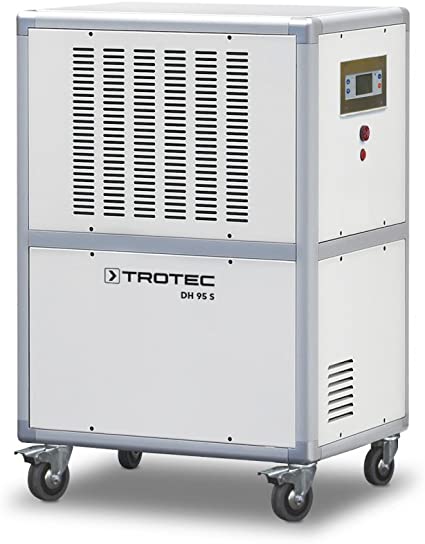 Déshumidificateur industriel pour locaux de 1600 m³ max. à capacité d'extraction max. de 130 l/24 h. Le DH 95 S est un appareil très efficace aux composants de qualité, compact et sur roulettes, utilisable à partir de 5 °C. Une solution efficace pour prévenir les moisissures, la corrosion et les dégradations dues à l'humidité dans les locaux industriels de 1600 m³ max. En garantissant une hygrométrie idéale, ce déshumidificateur permet également de faire baisser les coûts de chauffage. Détails pratiques et points forts de l'appareil : Pompe de relevage intégrée pour évacuer les condensats Maintenance et entretien simple Fonctionnement efficace et discret Protège bâtiments, marchandises et machines de l'humidité Empêche la formation de condensation Atténue les odeurs désagréables Endigue la multiplication des microorganismes sur les produits alimentaires Améliore la qualité de l'air - un plus pour la santé Crée les conditions d'hygrométrie requises pour les installations électriques et les process industriels Caractéristiques techniques du DH 95 S : Capacité de déshumidification max. (à 30 °C/80 h.r.) : 130 l/24 h Capacité de déshumidification à 20 °C/60 h.r. : 35 l/24 h Débit d'air max. : 1100 m³/h Conditions adm. de fonctionnement : 5 °C - 32 °C ; 30 % h.r. - 100 % h.r. Pour locaux de 1600 m³ max. Branchement : 230 V/50 Hz Puissance absorbée max. : 1,9 kW Puissance assignée : 1,7 kW Courant assigné : 7,4 A Réfrigérant : R407c (1,5 kg) Roulettes de transport métalliques à revêtement caoutchouc Transport par chariot élévateur possible : oui Niveau sonore (à 1/3 m) : 62/53 dB(A) L x l x h : 465 x 600 x 910 mm Poids : 65 kg