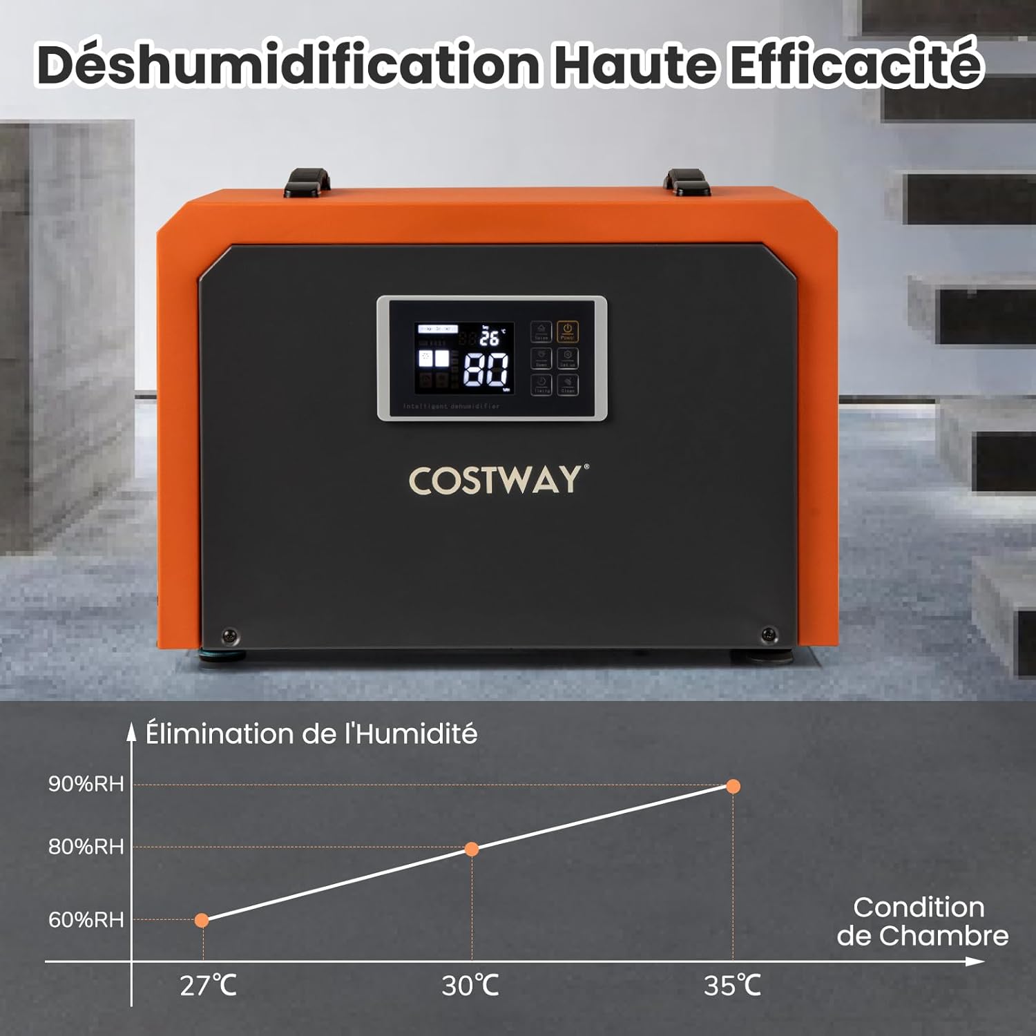 Déshumidificateur haute performance peut éliminer jusqu'à 60 L/Jour