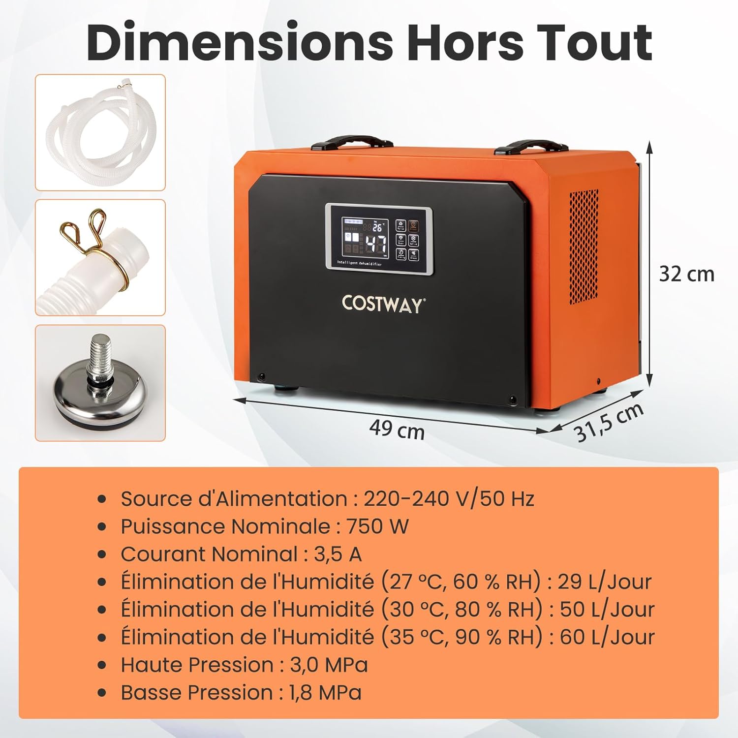 Comprend un tuyau de drainage de 204 cm pour le drainage par gravité