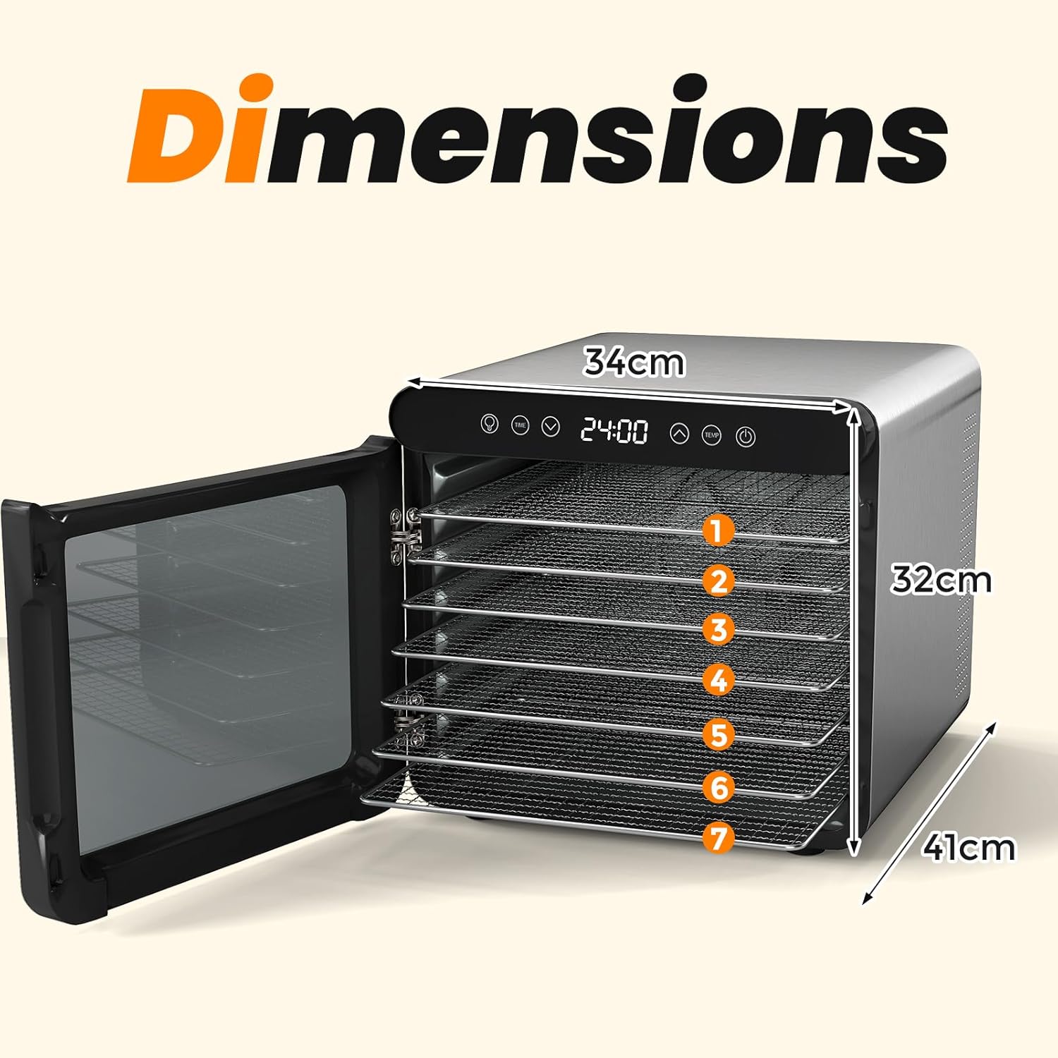 Déshydrateur alimentaire, 7 plateaux en acier inoxydable, température 30 à 75℃, minuterie 24h