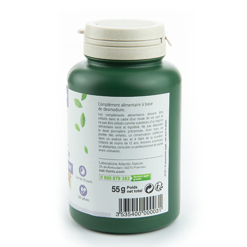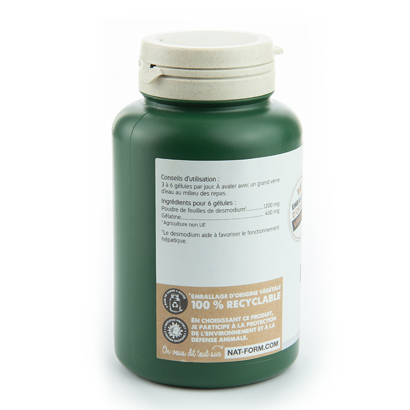 Ingrédients pour 6 gélules : Poudre de feuilles de desmodium 1020 mg Gélatine 450 mg