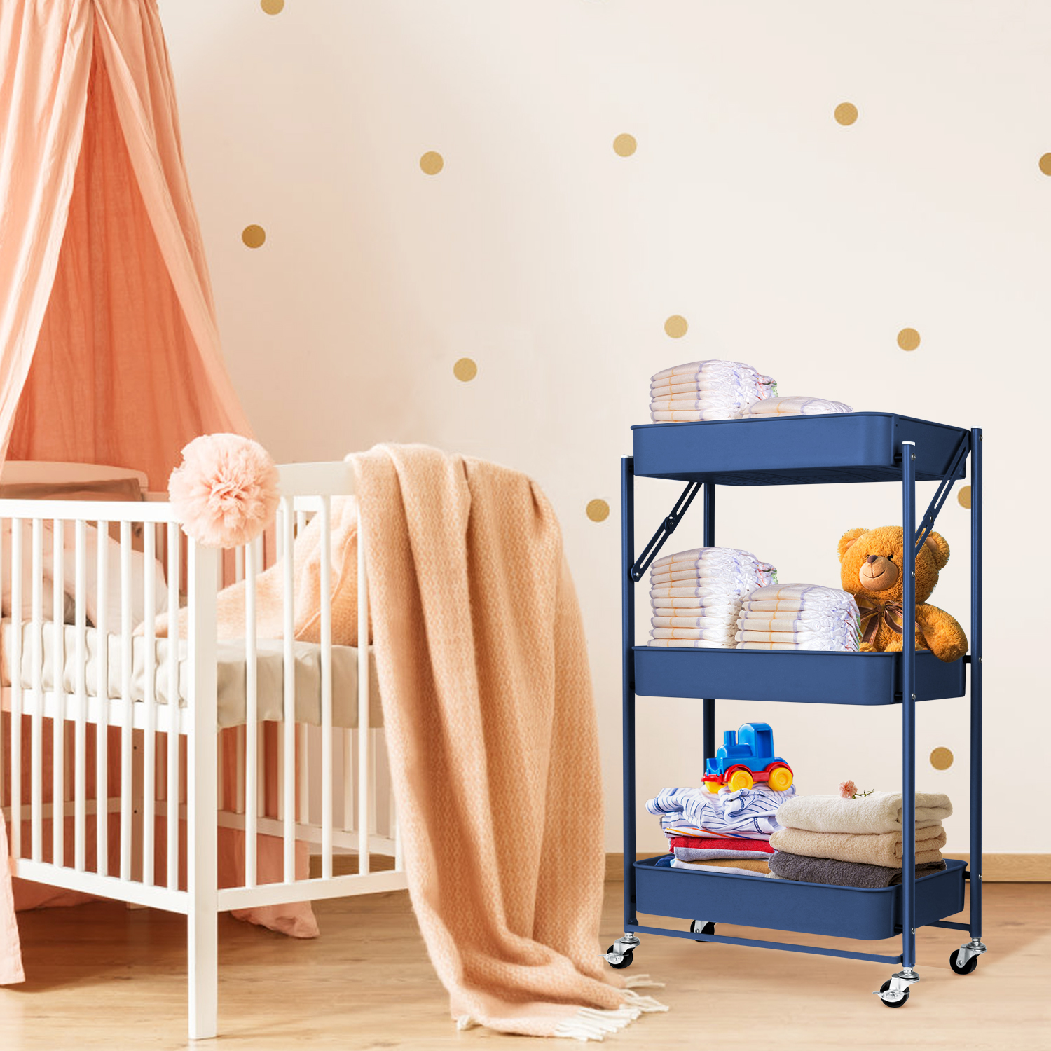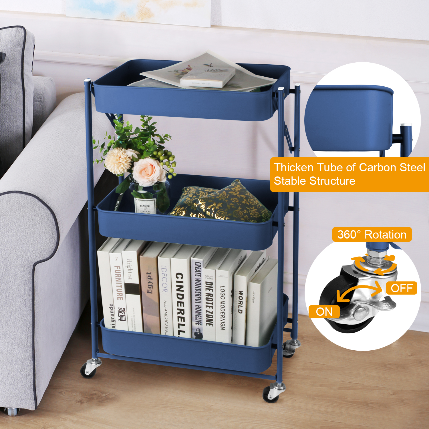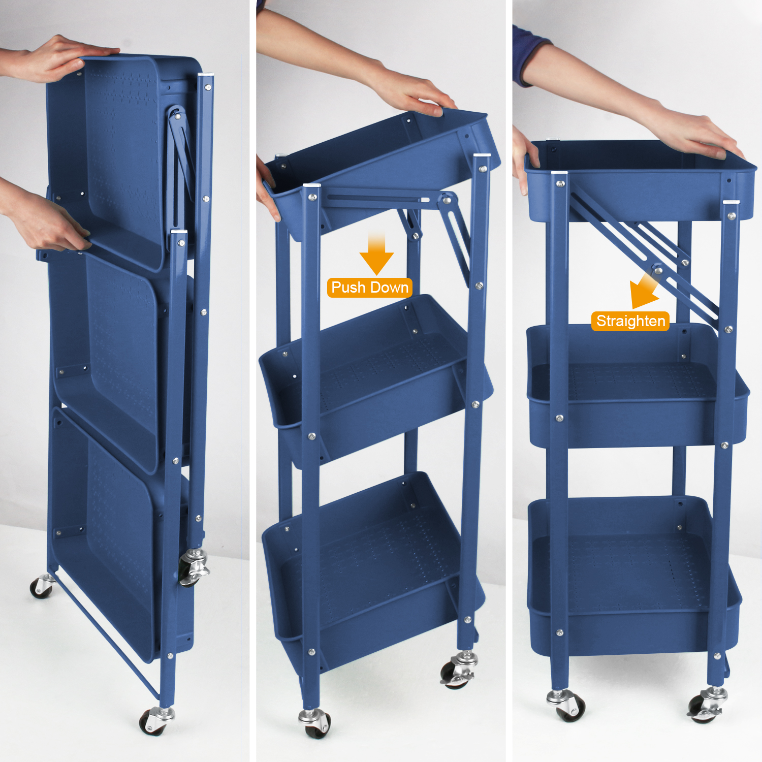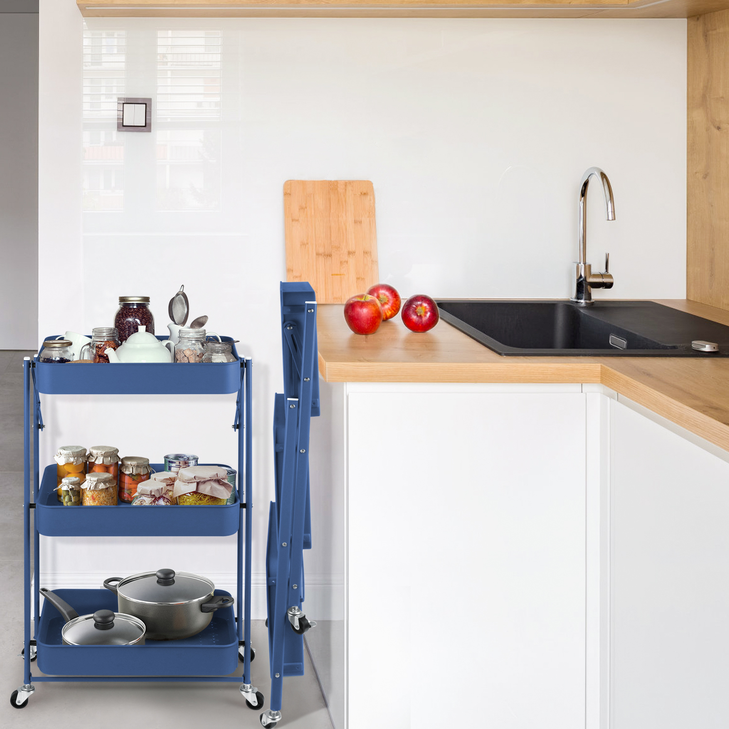 Desserte à roulettes Pliante, Chariot Mobile à 3 Niveaux, Chariot de Cuisine, Pas d'assemblage, 46 x 29 x