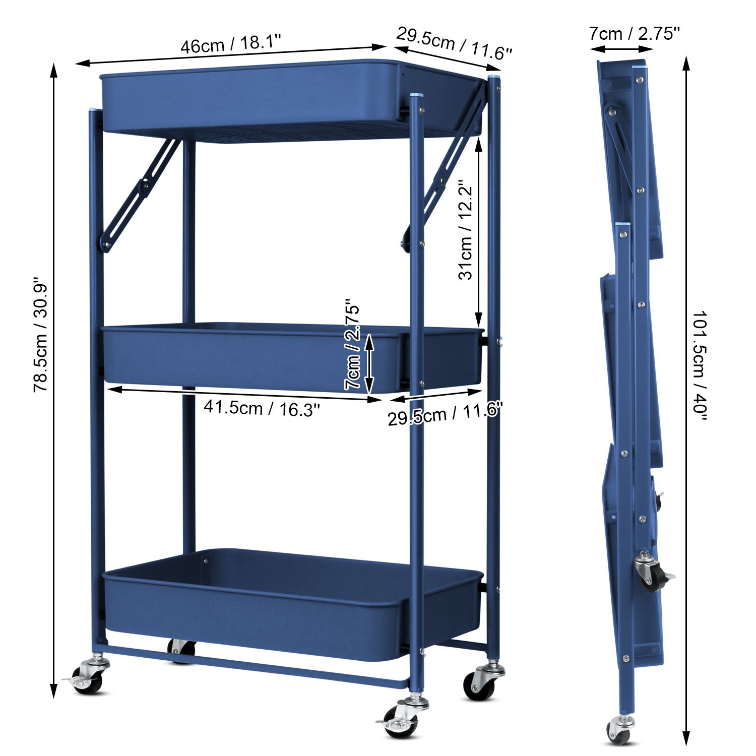 | Libellé | Desserte à roulettes Pliante, Chariot Mobile à 3 Niveaux, Chariot de Cuisine, Pas d'assemblage, 46 x 29 x 78 cm, pour Salle de Bain, Vestiaire (Bleu) |