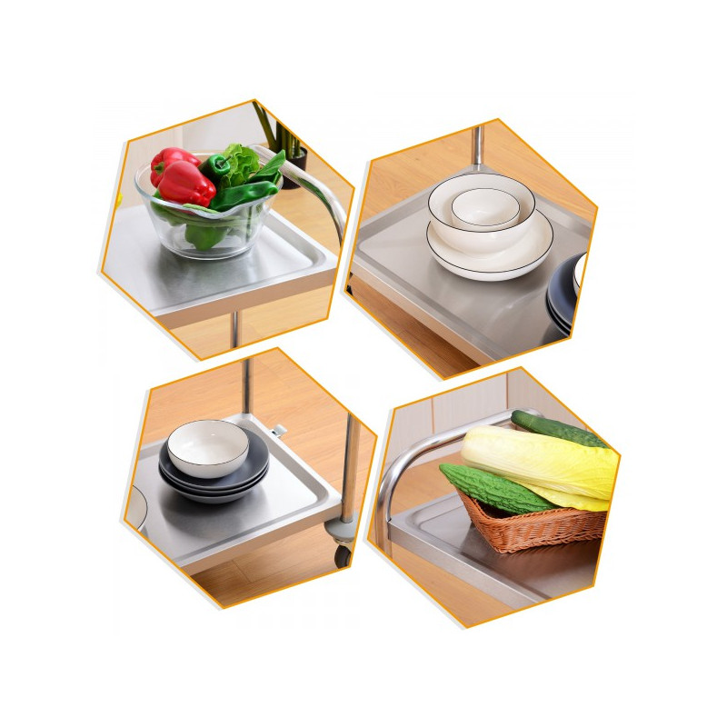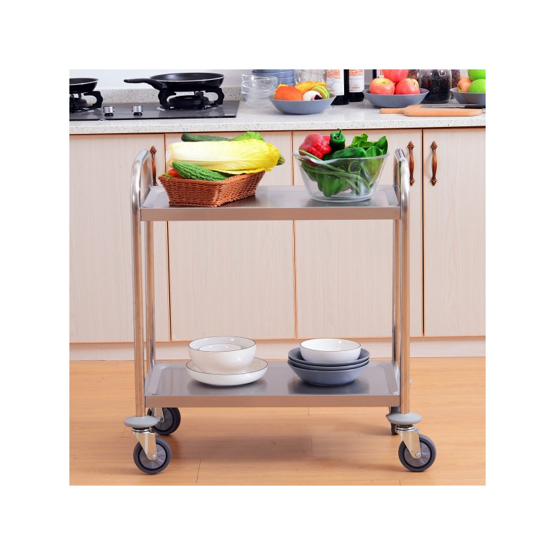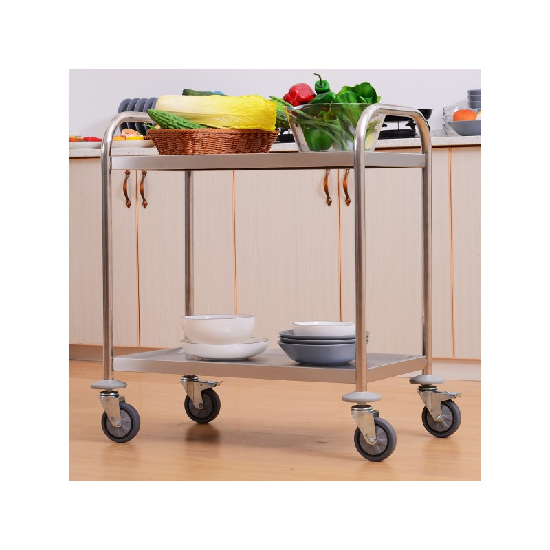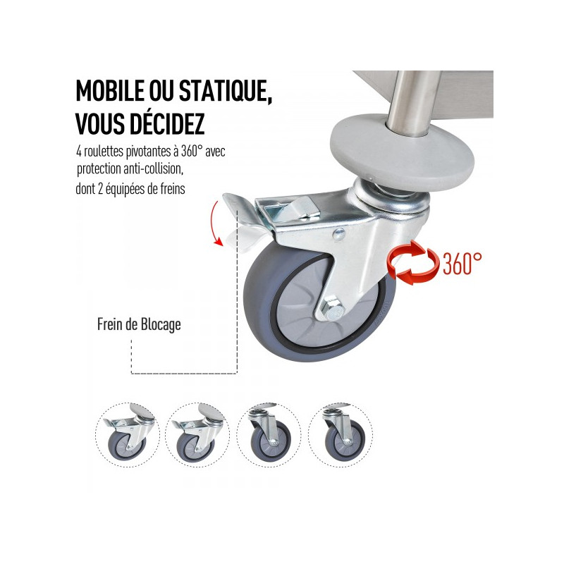 Il était une fois une famille qui invitait beaucoup. Grâce à cette magnifique desserte de cuisine, le service était facilité. Merci à MYCOCOONING d'avoir prévu deux étagères ou trois étagères (suivant modèle choisi) en acier inoxydable chromé. Le meuble de rangement se marie facilement avec vos mobiliers de cuisine, que vous soyez cuisine traditionnelle ou ensemble contemporain. Les quatre roulettes pivotantes à 360° assurent la mobilité et les deux roues équipées de freins la stabilité. Vous ne rêvez pas, ce modèle vous sera utile pour longtemps. Caractéristiques : Desserte de cuisine sur roulettes très pratique Deux étagères ou trois étagères au choix Format pratique : 71 x 41 x 81 cm Acier inoxydable chromé Sobriété et modernité des lignes Idéale pour accueillir grille-pain, micro-onde, couverts ou assiettes Quatre roulettes pivotantes à 360° pour faciliter le déplacement, dont deux équipées de frein Grande capacité de charge Charge maximum par étagère : 50 Kg
