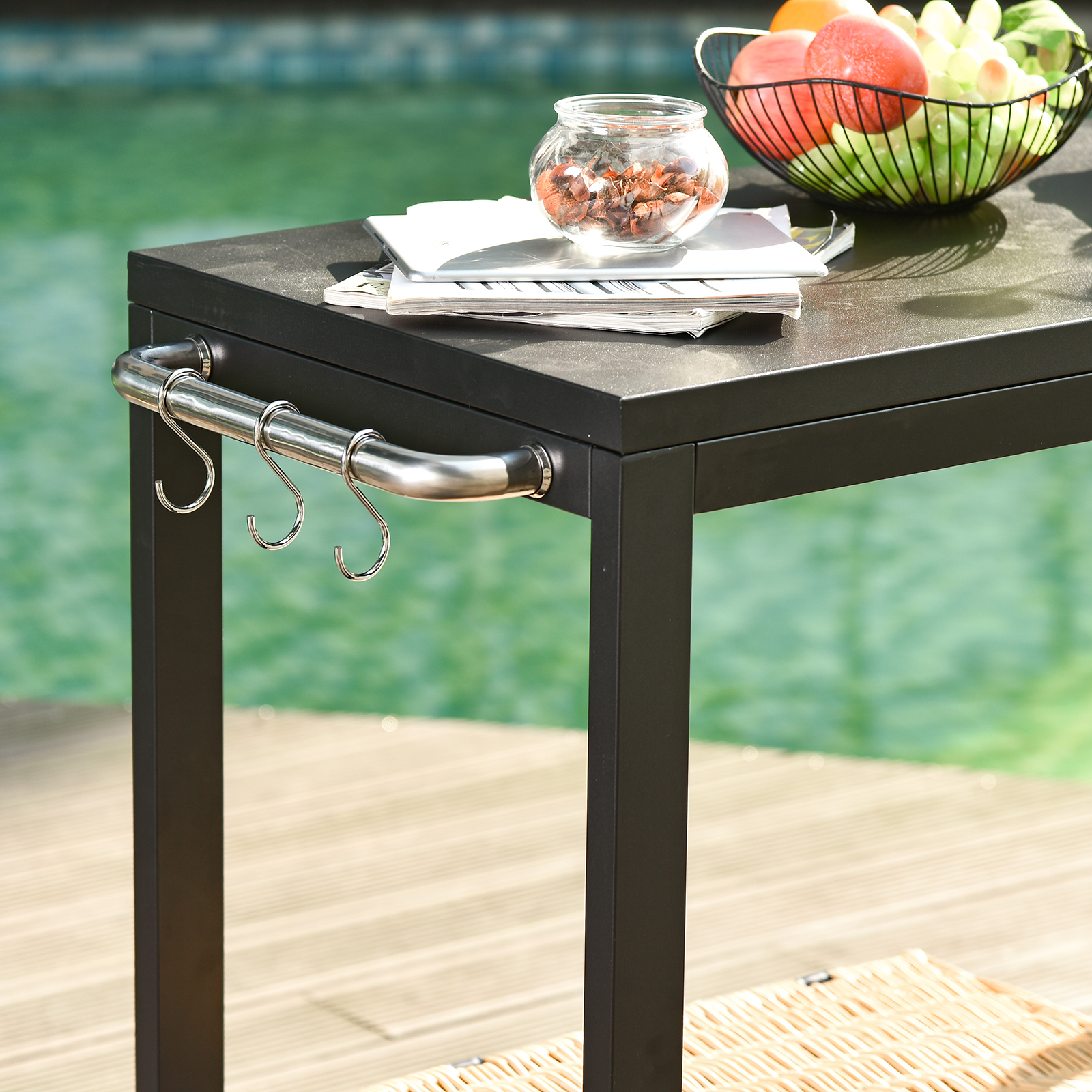 | Libellé | Desserte de jardin - desserte pour plancha - chariot de service à roulettes multi-rangements dim. 128L x 46l x 86H cm acier noir |