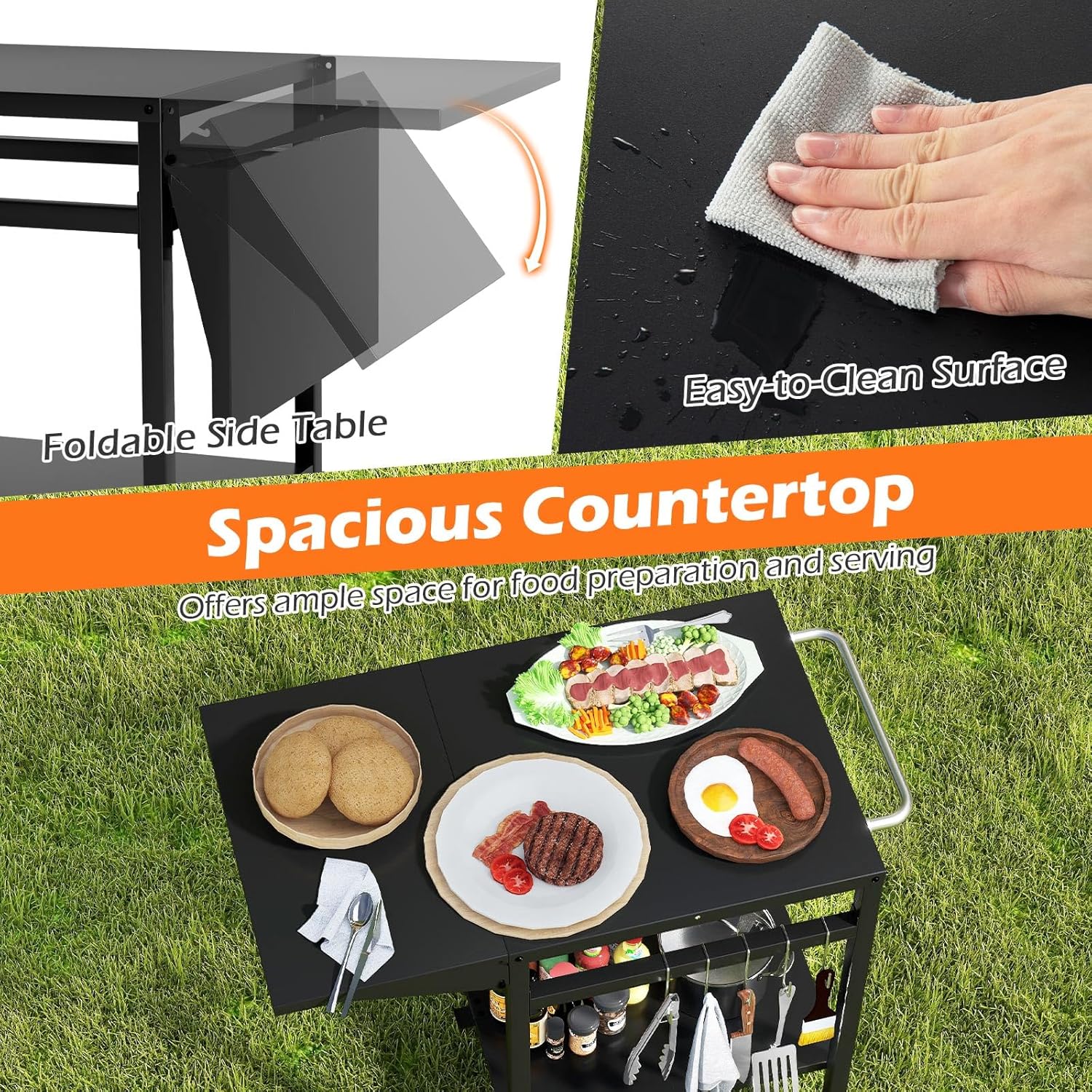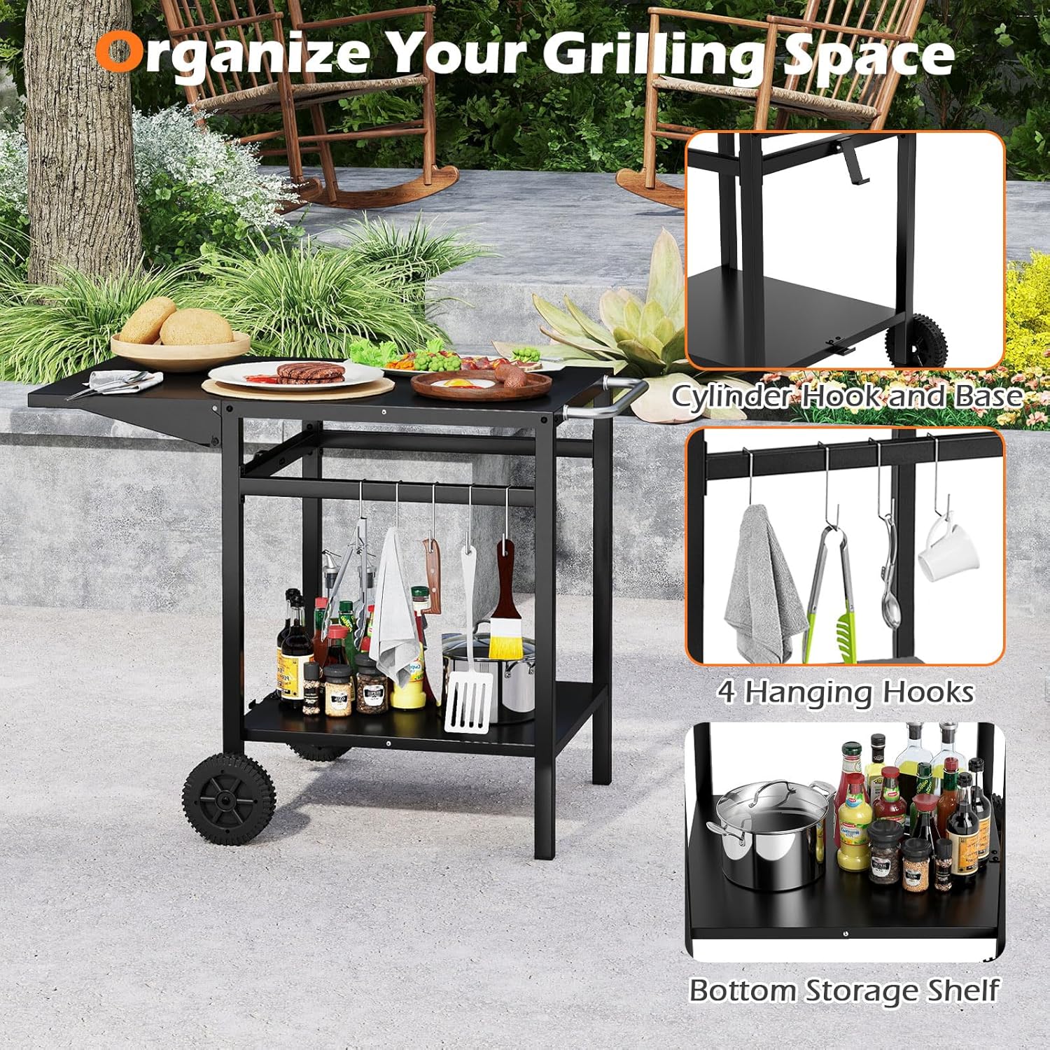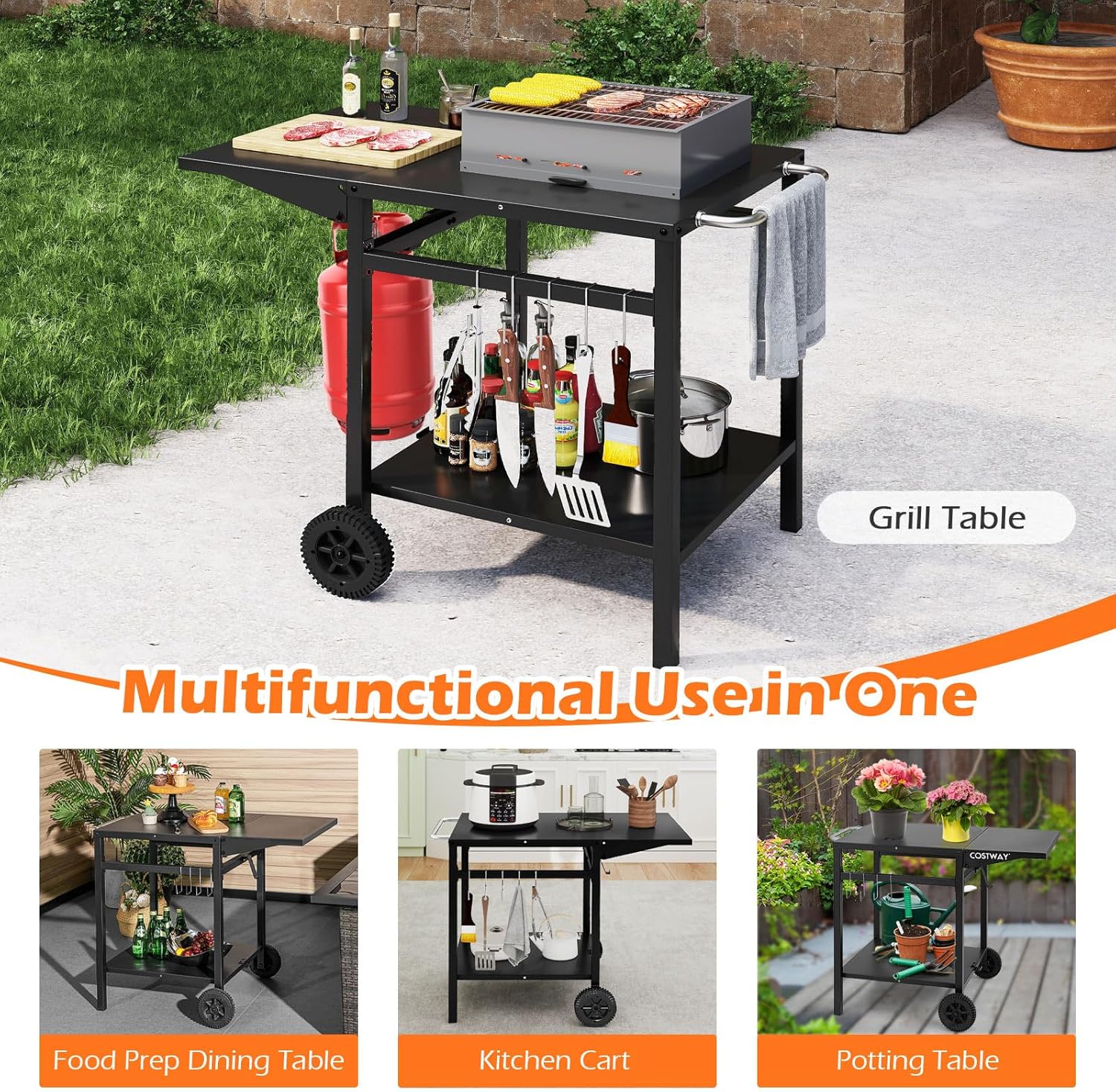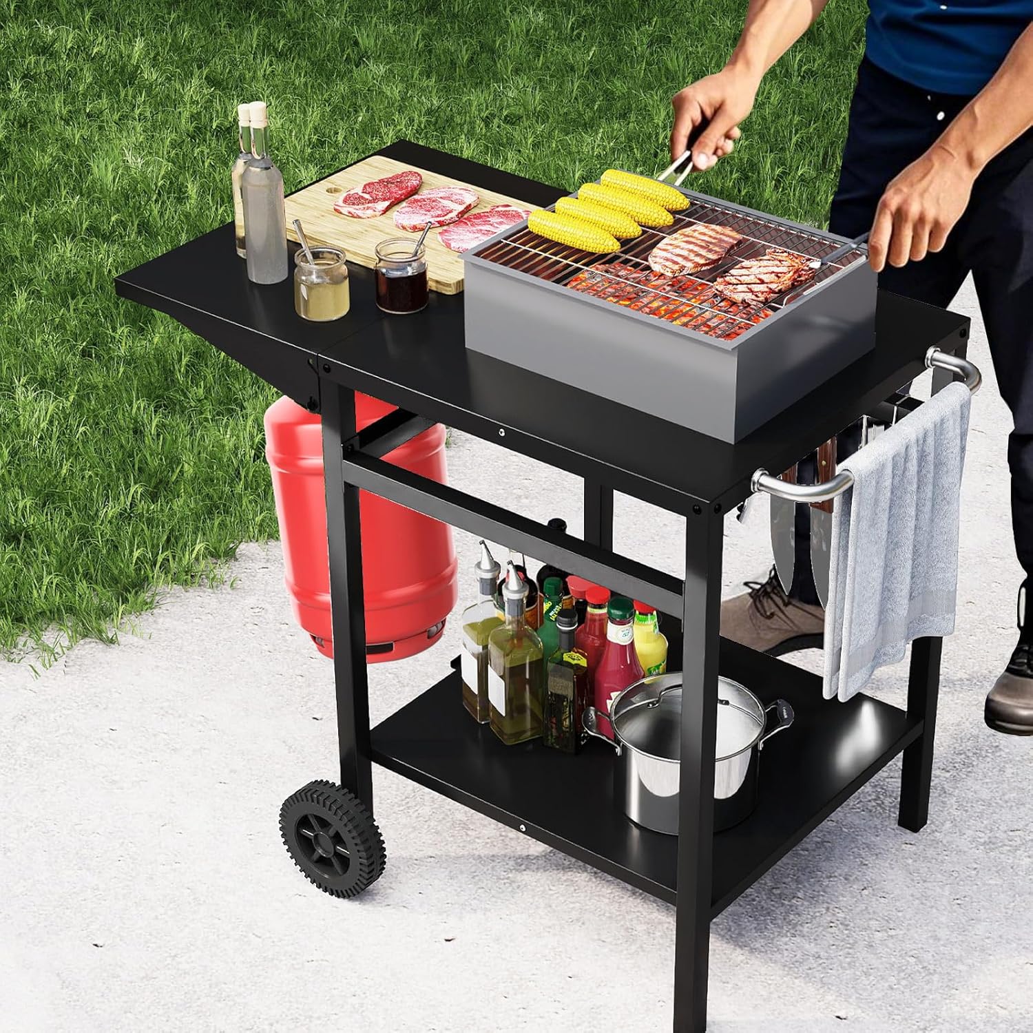 | Libellé | Desserte jardin chariot de barbecue avec 2 roues desserte extérieur barbecue, plancha avec plateau pliant |