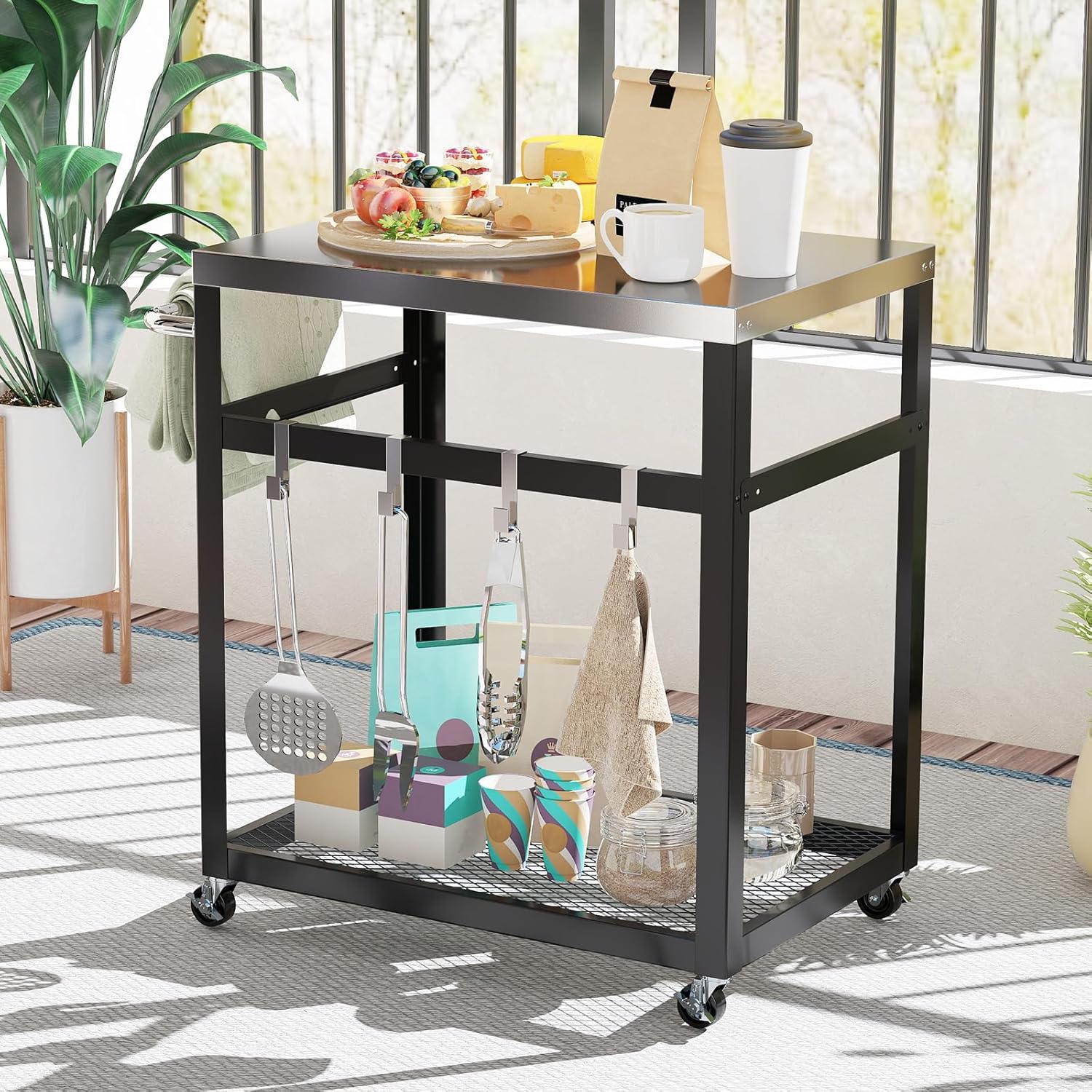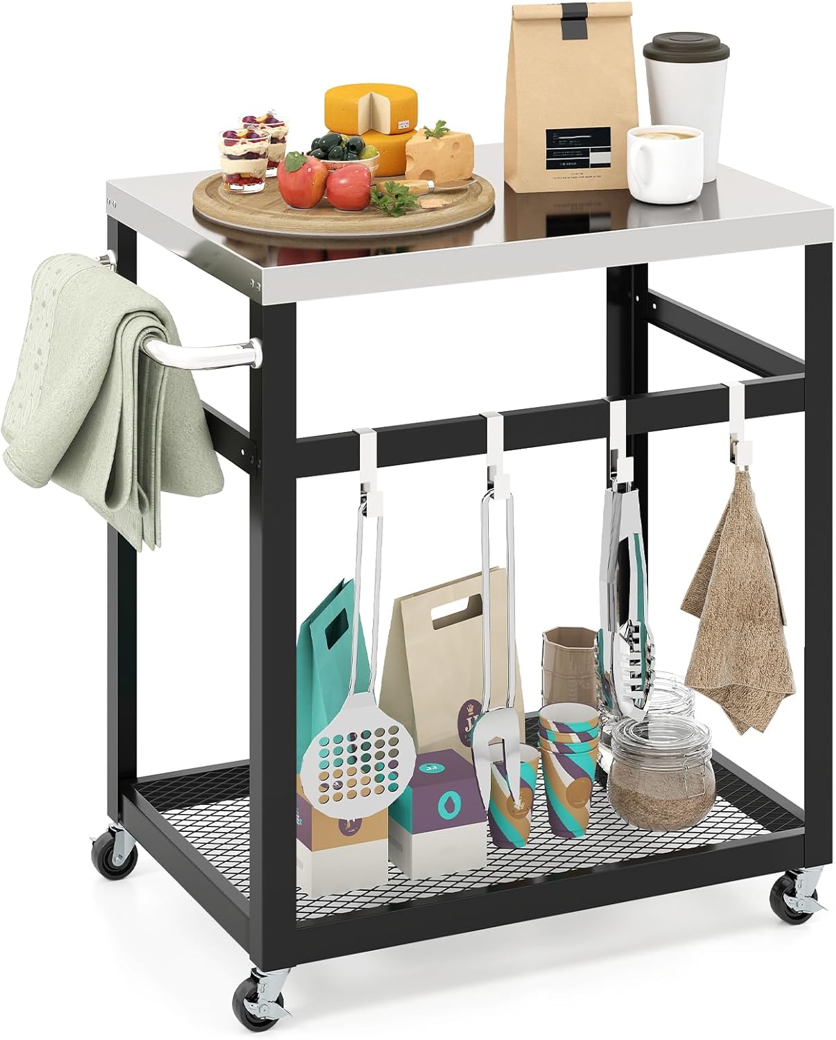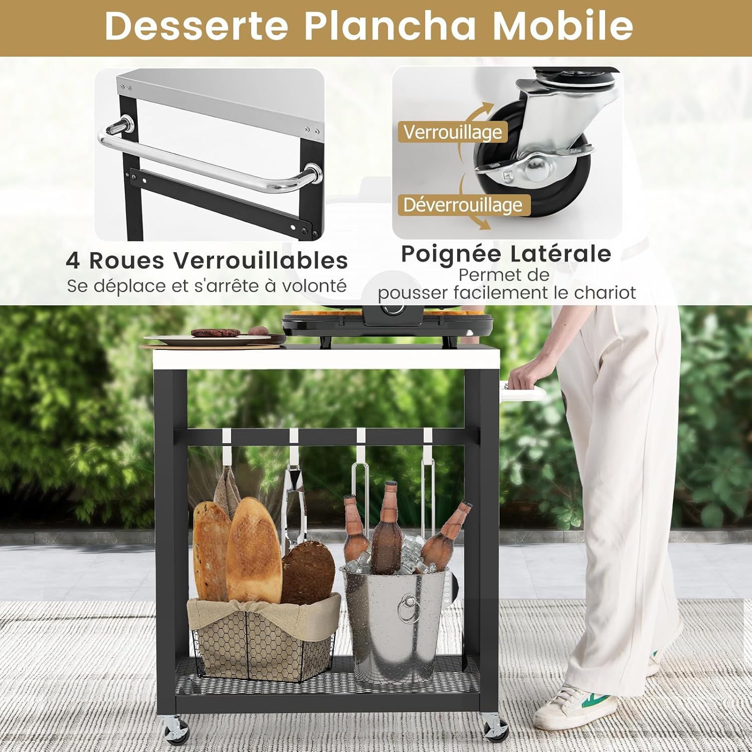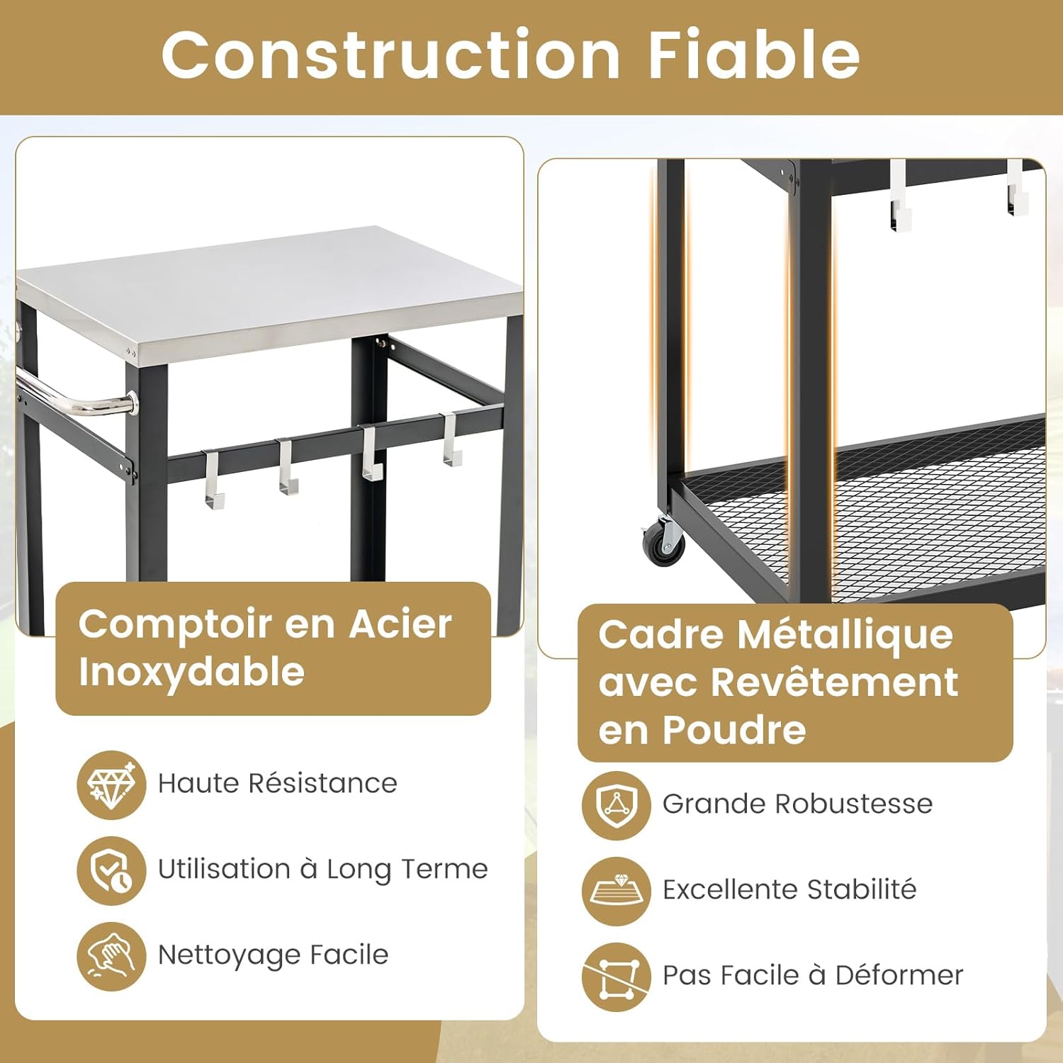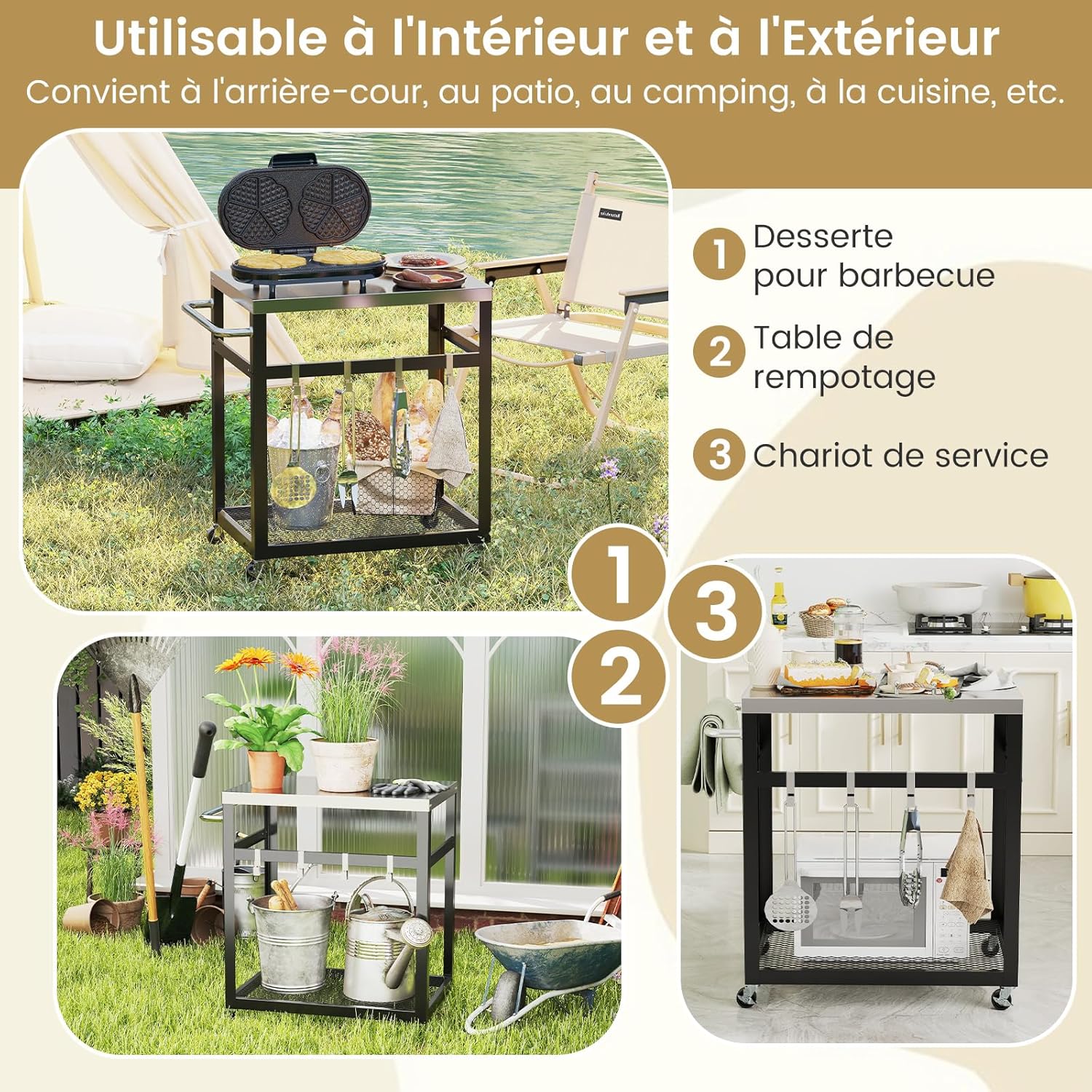 - Matériau de Haute Qualité : Notre chariot de service mobile est fait d'un cadre métallique robuste et d'un comptoir en acier inoxydable durable, qui ne se déforme pas et ne rouille pas facilement, et présente une forte résistance aux intempéries, convenant à une utilisation extérieure de longue durée.