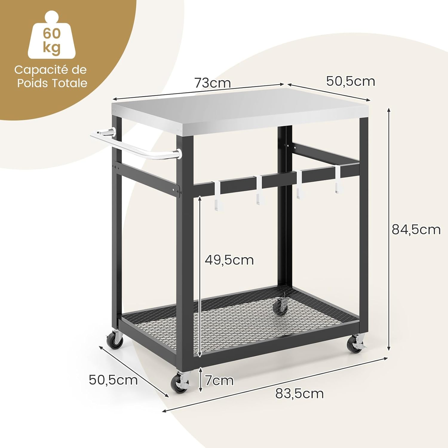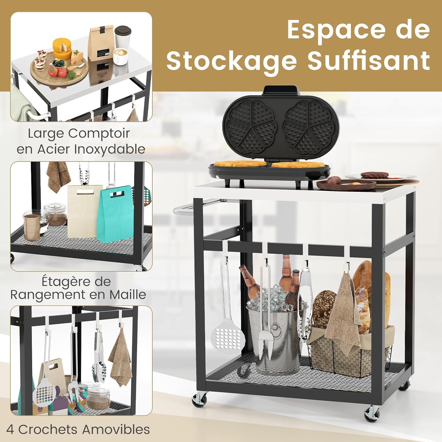 | Libellé | Desserte jardin plancha à 2 niveaux en métal avec comptoir en acier inoxydable étagère 4 crochets,argenté |