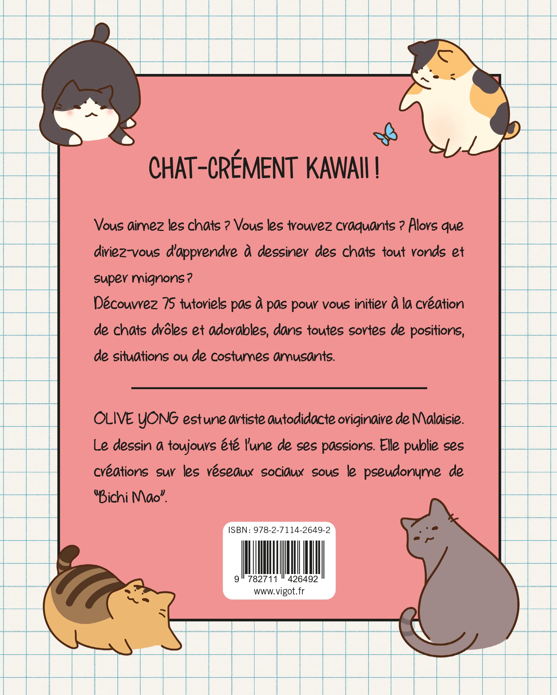 Vous aimez les chats ? Vous les trouvez craquants ? Alors que diriez-vous d’apprendre à dessiner des chats tout ronds et super mignons ? Découvrez 75 tutoriels pas à pas pour vous initier à la création de chats drôles et adorables, dans toutes sortes de positions, de situations ou de costumes amusants. OLIVE YONG est une artiste autodidacte originaire de Malaisie. Le dessin a toujours été l’une de ses passions. Elle publie ses créations sur les réseaux sociaux sous le pseudonyme de “Bichi Mao”.