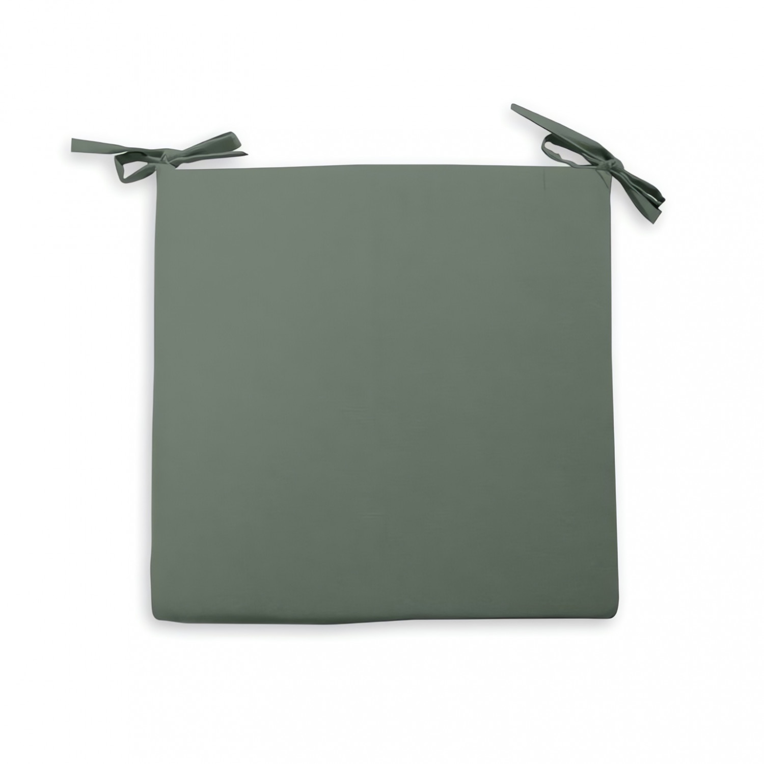 Galette de chaise extérieure enduite imperméable. Finition: - A nouettes. Couleur: - Vert. Composition: - enveloppe: 100% polyester; - garnissage: mousse polyuréthane. Dimensions: - 40x40x5 cm. Entretien: - Lavage en machine à 30 degrés.
