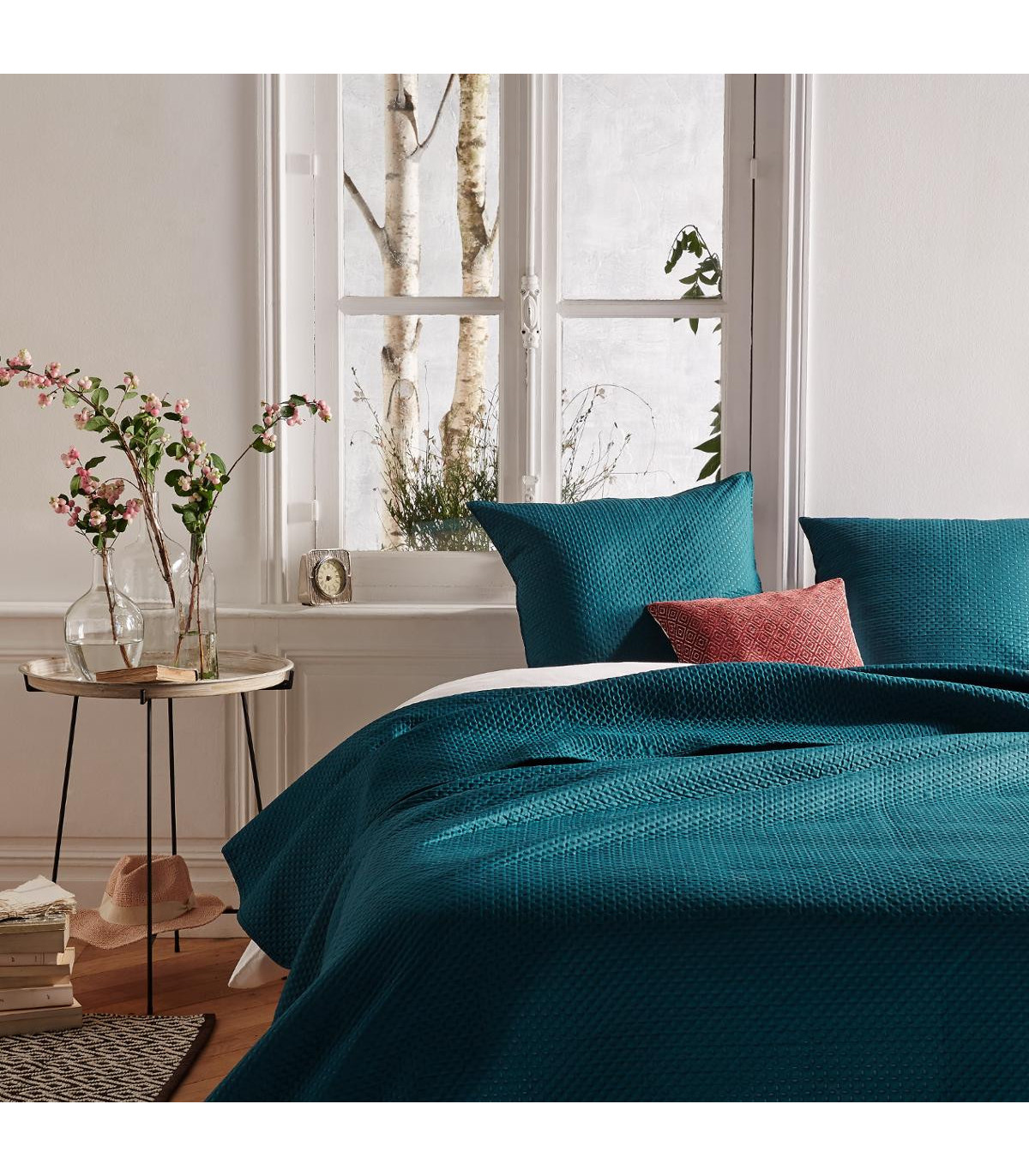 Dessus de lit Bleu canard 240 x 260 cm avec 2 Taies