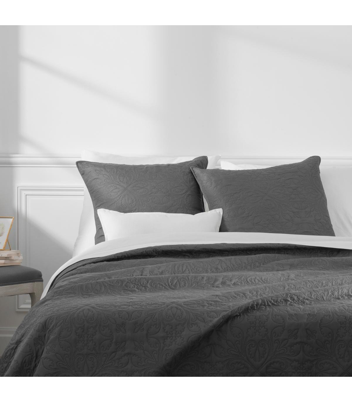 Dessus de lit Gris foncé motif Arabesque 240 x 260 avec 2 Taies