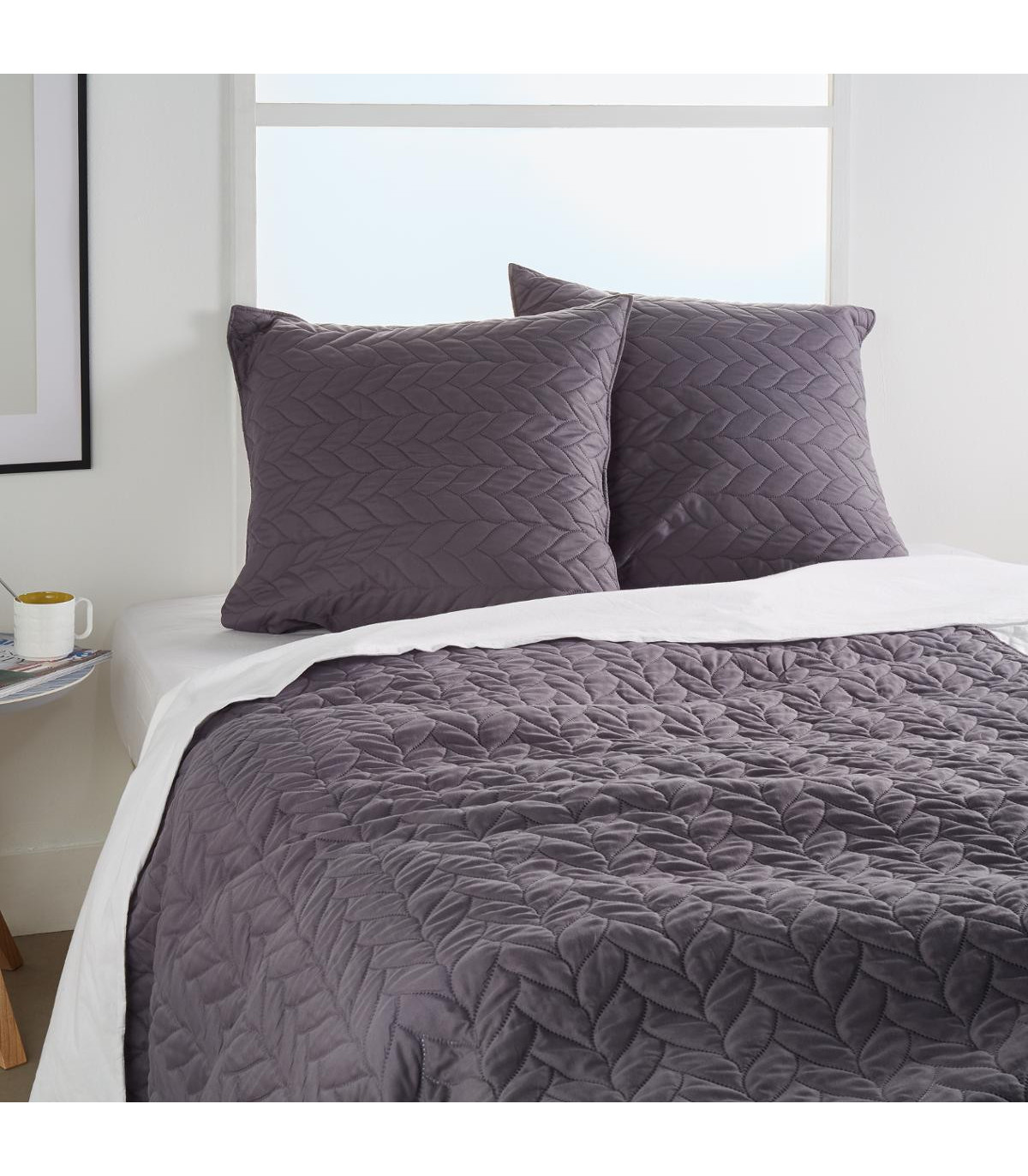 Dessus de lit Gris foncé motif tresse 240 x 260 cm avec 2 Taies --