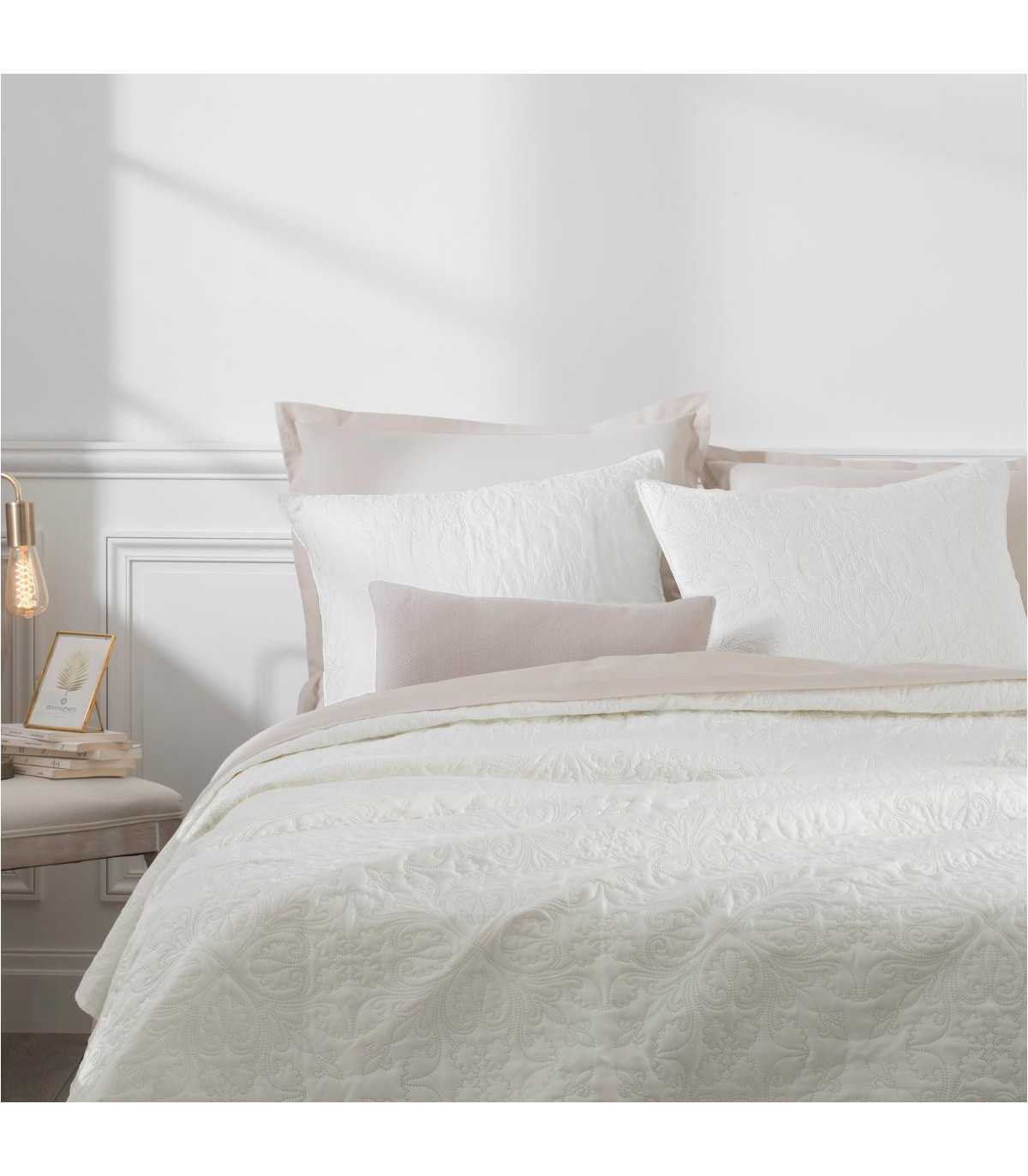 Dessus de lit Ivoire motif Arabesque 240 x 260 avec 2 Taies