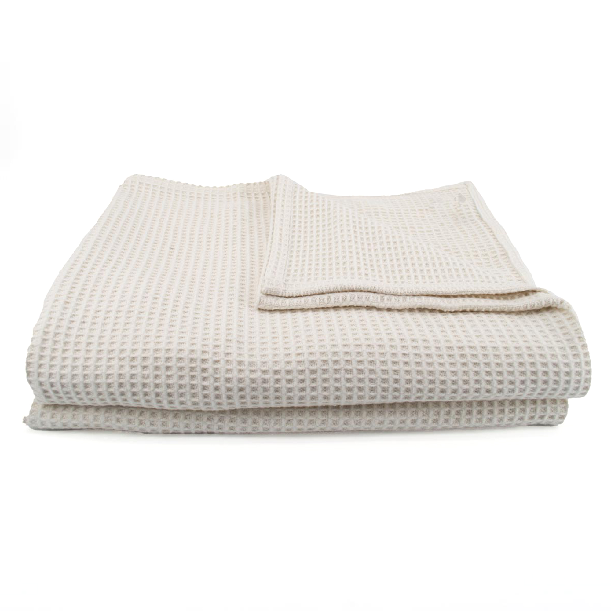 Dessus de lit 230x250 cm YVOIRE nid d'abeille coton écru naturel