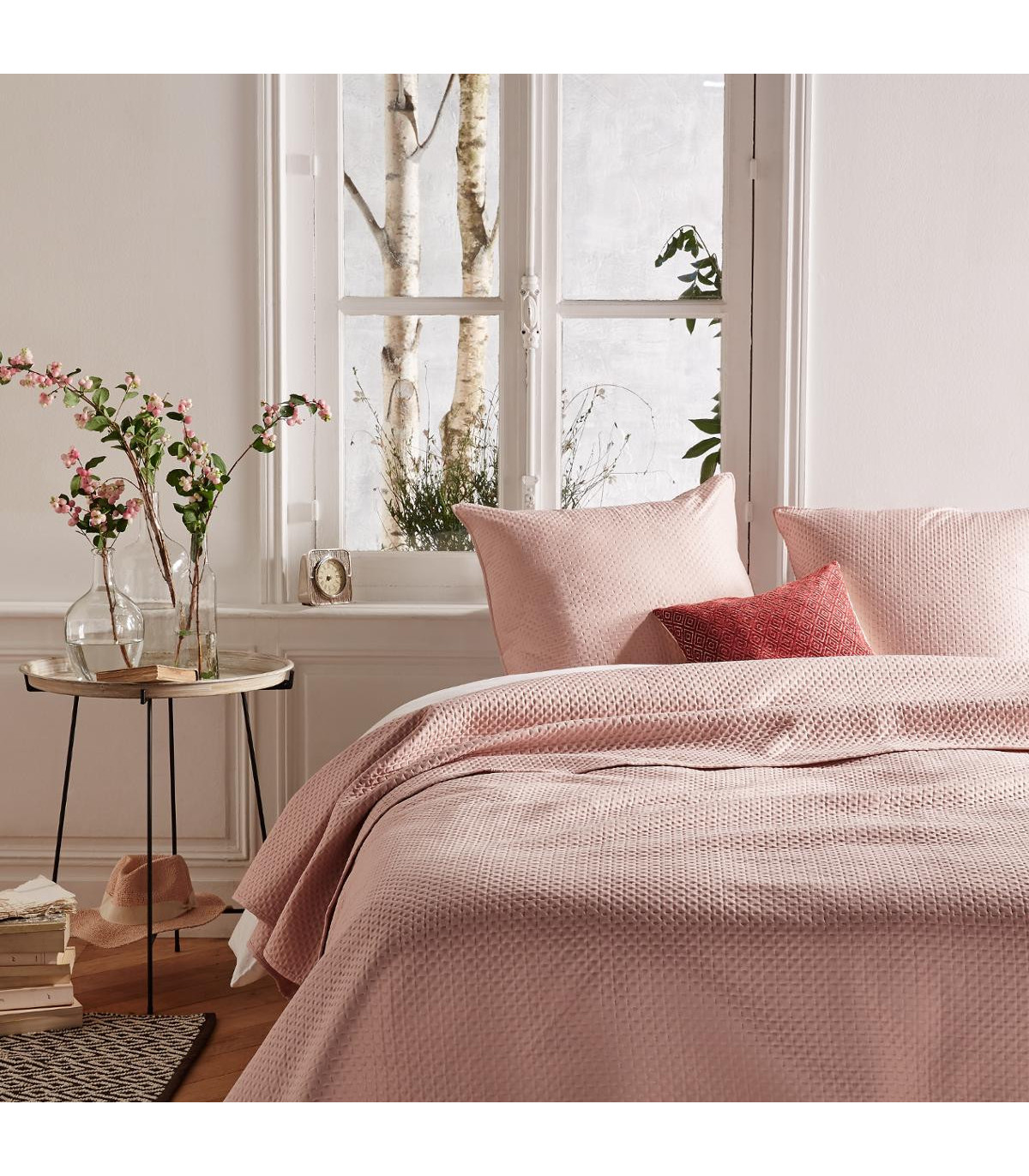 Dessus de lit Rose 240 x 260 cm avec 2 taies