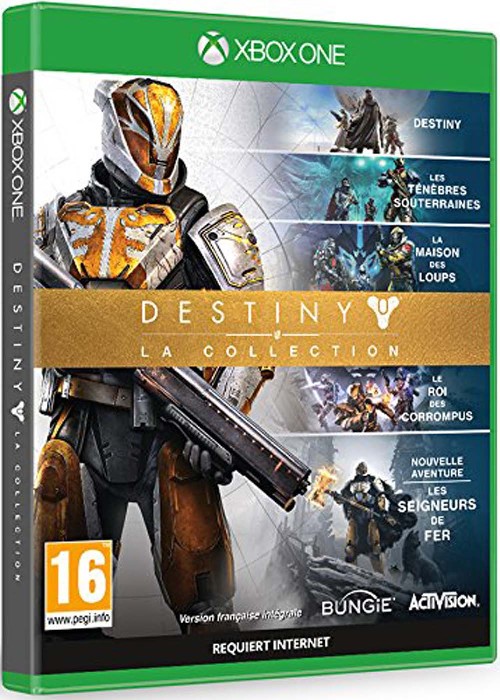 Précommandez et recevez le Gjallarhorn de Fer, l'arme préférée de la communauté ! Destiny : La Collection contient tous les épisodes de la série : Destiny jeu de base + l'Extension I : Les Ténèbres souterraines + l'Extension II : La Maison des Loups + Le Roi des Corrompus + la toute dernière aventure, Les Seigneurs de Fer. Elle inclut aussi un objet qui permet de faire monter le niveau d'un personnage, pour partir immédiatement au combat. C'est le moment idéal pour se lancer dans l'aventure et rejoindre la communauté Destiny, mais c'est aussi un excellent moyen pour les Gardiens de découvrir les aventures qu'ils auraient manquées. Dans Destiny, vous incarnez un Gardien de la dernière cité sur Terre, capable de manier l'incroyable puissance du Voyageur. Explorez les vestiges de notre système solaire, des dunes de Mars aux jungles luxuriantes de Vénus. Triomphez de nos ennemis. Récupérez ce que nous avons perdu. Devenez une légende.