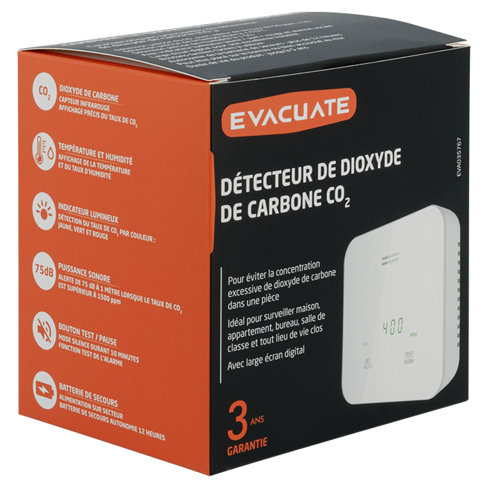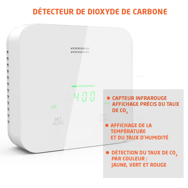 Caractéristiques principales du détecteur de dioxyde de carbone (CO2) :