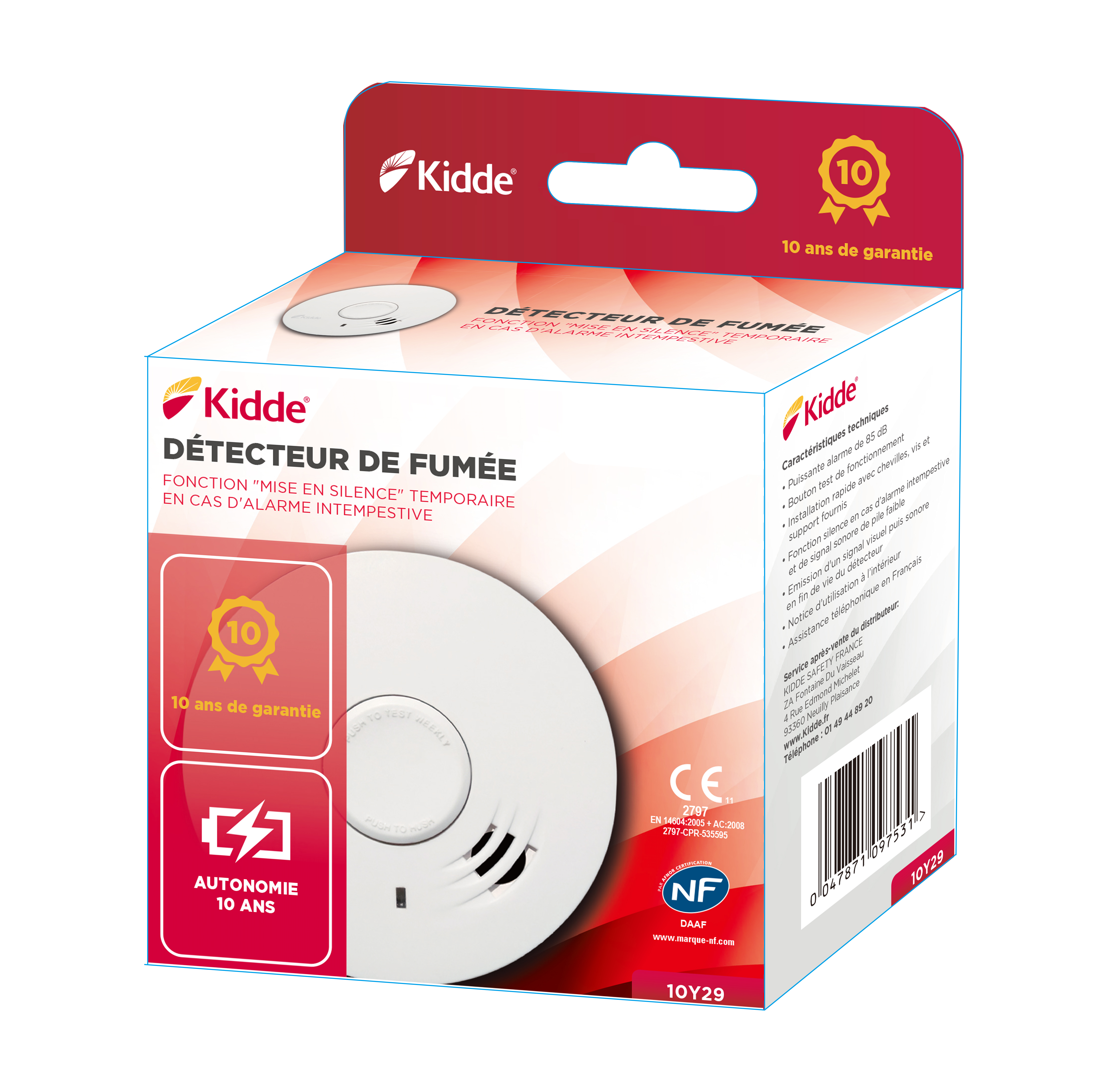 Caractéristiques du détecteur de fumée 10Y29 10 ans - Kidde