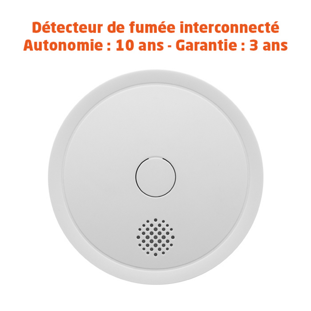 Détecteur de fumée interconnecté - Autonomie 10 ans - Garantie 3 ans - Jusqu'à 40 appareils interconnecta
